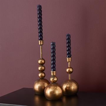 Brass Bauble Candlesticks - Set of 3