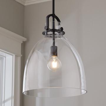 Pickled Wood and Clear Glass Pendant - Bell Glass