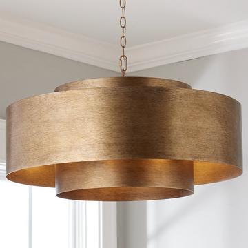 • A Kalini Double Drum Convertible Chandelier with Matte Brass / Bleached Natural Rope color