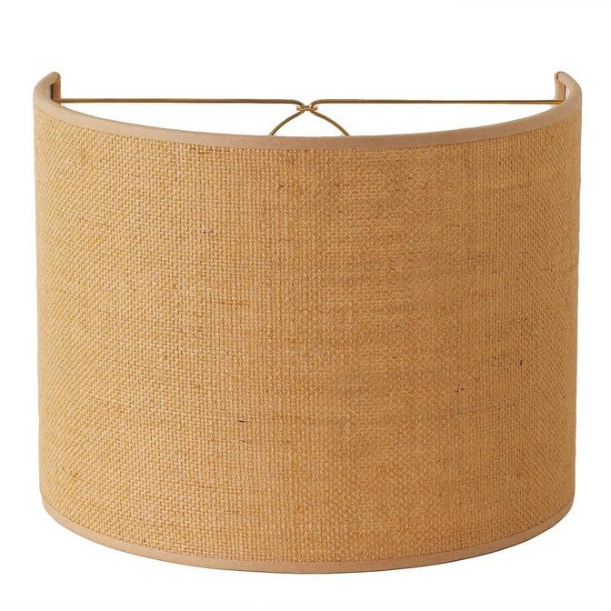 Larger shield half shade with regular bulb clip for larger wall sconces! Burlap in natural or cream. 75 watts.10" top x 10" bottom x 8" side