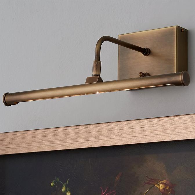This battery-operated LED picture light has a stylish minimalist profile, a rotating joint to position the shade, and beautiful warm light. Requires 4xC batteries (not included).