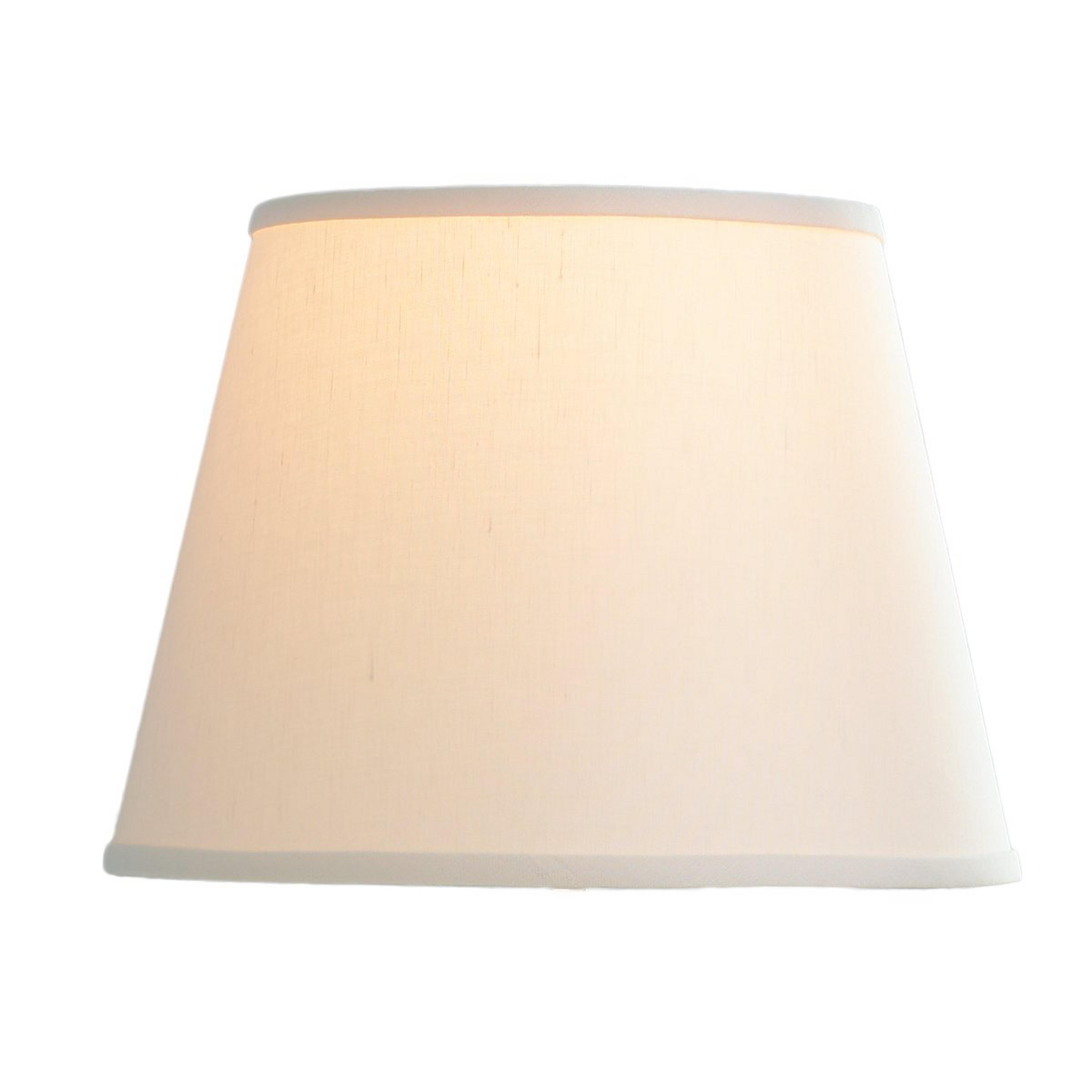 Cream or beige linen 8" top x 12" bottom x 9" side Regular bulb clip 75 watts.