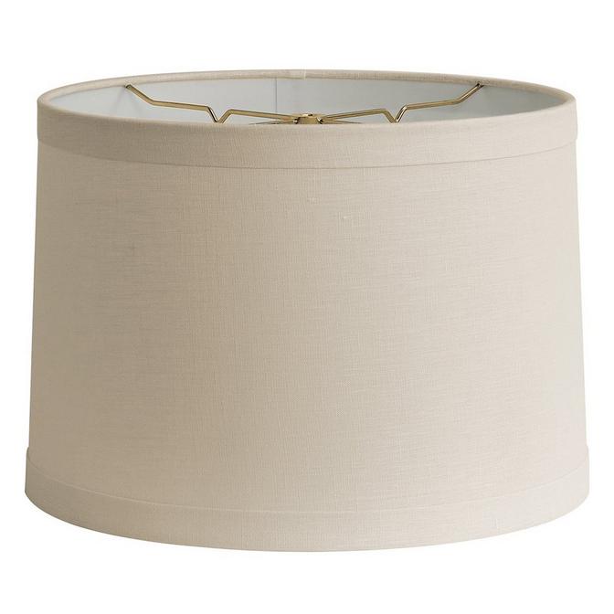 The 1" banded trim on this fine linen drum shade gives it that decorator look! Cream or Beige linen. (14"x15"x10.5") 150 watts.