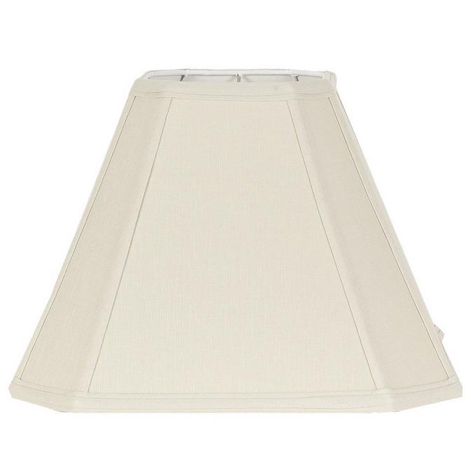 16" Linen Square Cut Corner Hardback Shade. Fine Beige Belgian linen with styrene lining. 100 watts. (7"topx16"bottomx12"side) Washer fitting. Made in America