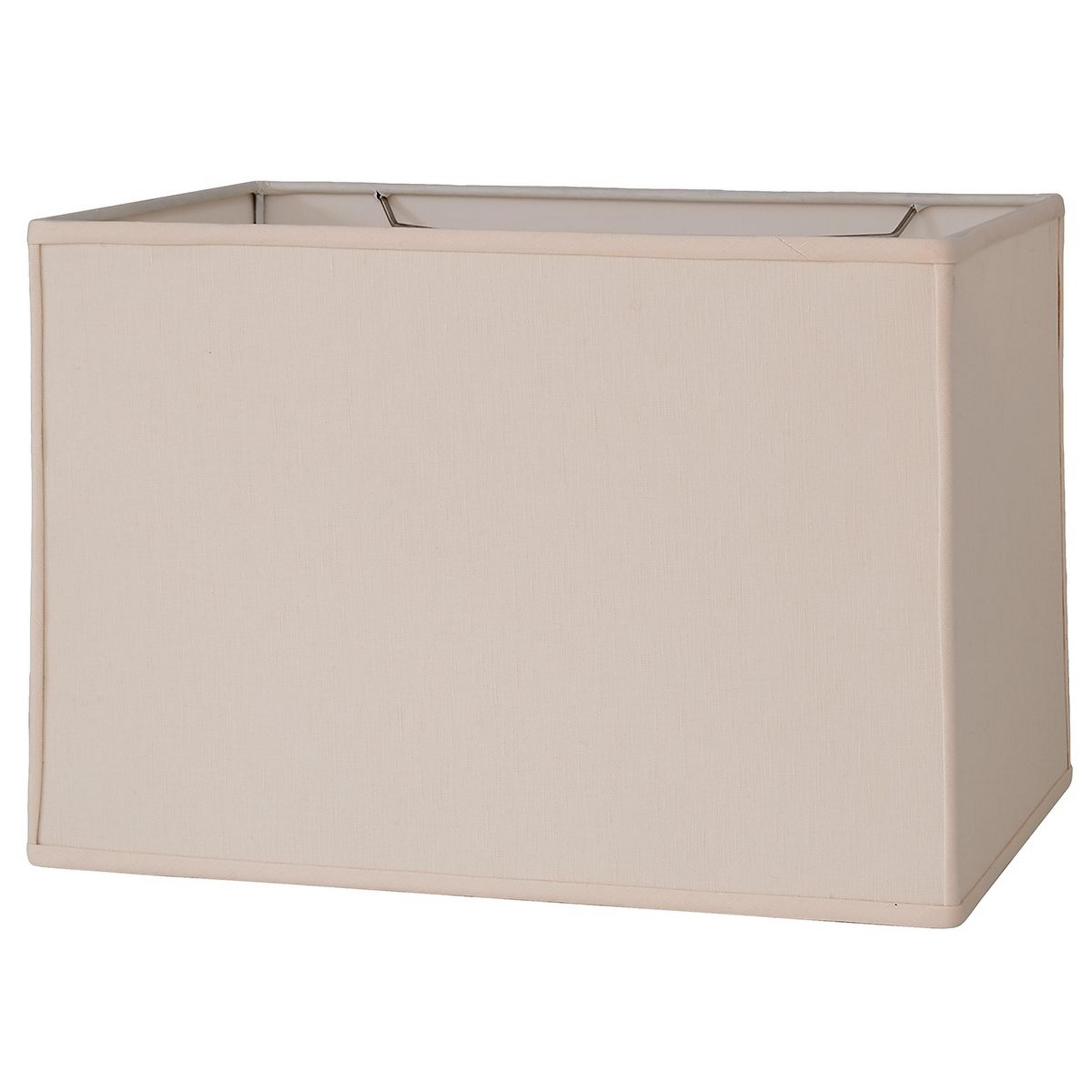 Crisp linen fabric and squared corners rectangular lamp shade. Spacesaver. Available in 4 neutral colors: Beige, Cream, Gray and White. Silver spider (washer) fitting. (10.5"x15.5" top)x(11"x16" bottom) x 11" side