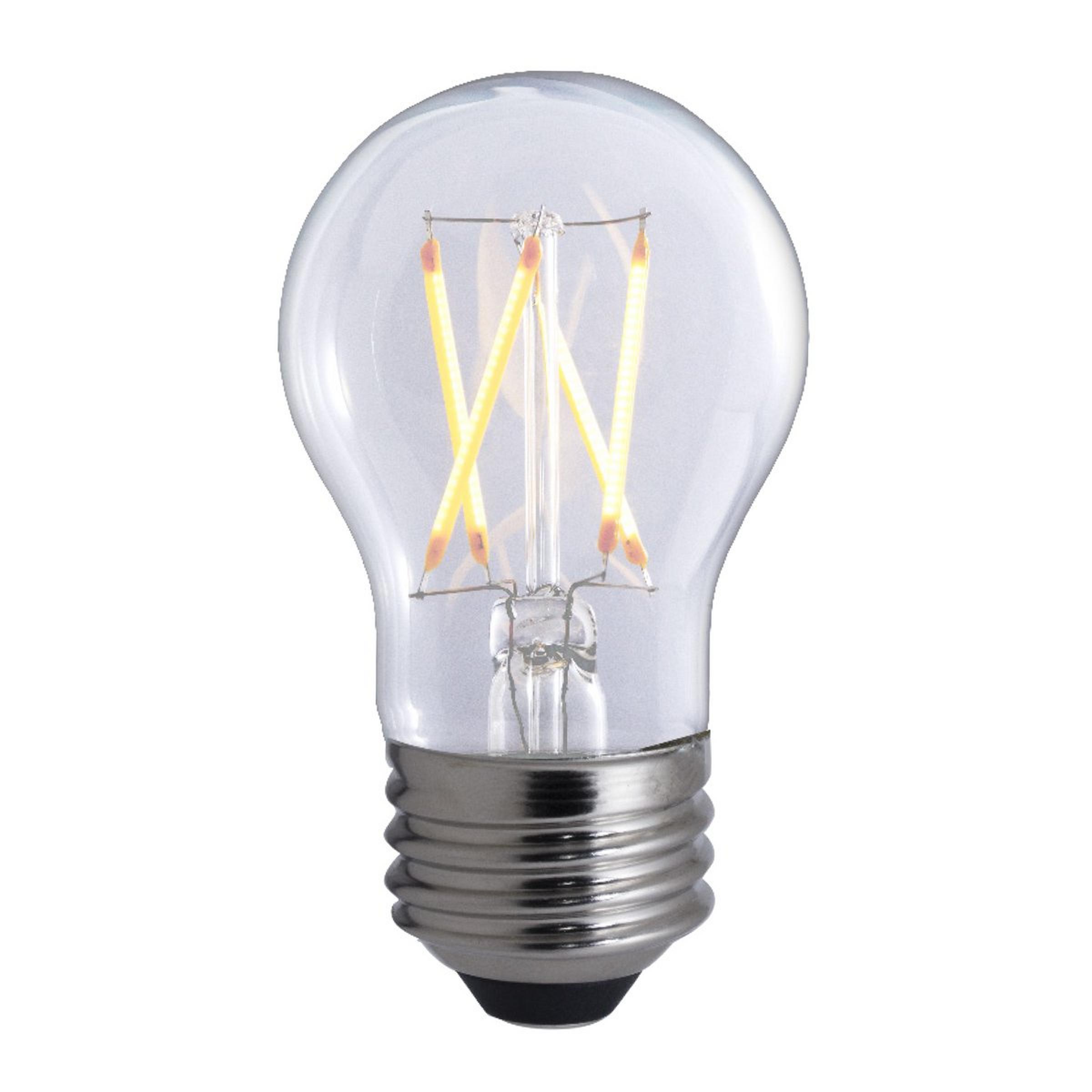 5 Watt Dimmable LED Clear. Shape: A15. Base: E26 Medium. Voltage: 120. Incandescent Equivalent: 40 Watt. Temp: 2700K. Lumens: 450. Color: Warm White. CRI: 90. Average Rated Hours: 15000. Good for Enclosed Fixtures and Wet Location. 3.39" length. 1.89" diameter.