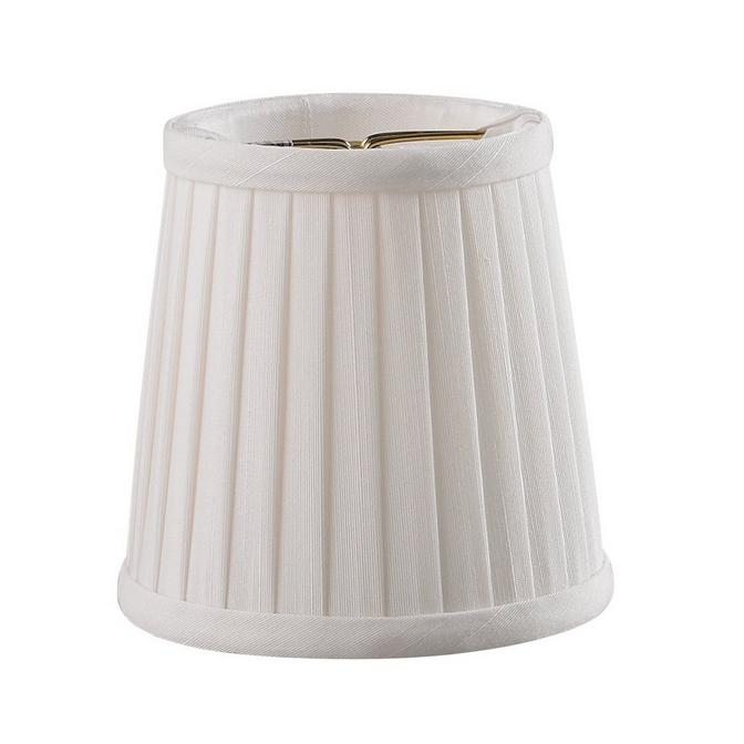 These chandelier mini pleated deep drum style softback shades are made of tissue Shantung material with self trim top & bottom and are available in the following colors: Off White, Eggshell, & Black. Our Off White & Eggshell color shades are lined in off white color satin material, and our Black color shades are lined in double gold satin material. Measures 3 inch top by 4 inch bottom by 4 inch overall height. Candle Clip style fitter with flush recess from the top. 25W max.