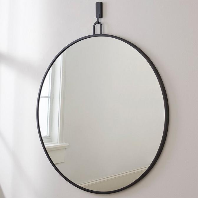 Minimalistic and magnificent, this thin-framed round mirror has one loop that suspends from a wall hanger - taking on the essence of a pocket watch. The classic style makes a great addition to any theme of decor, including traditional, vintage, and modern farmhouse. Add this elegant mirror to a bathroom vanity, bedroom, living room, hallway, or entryway.