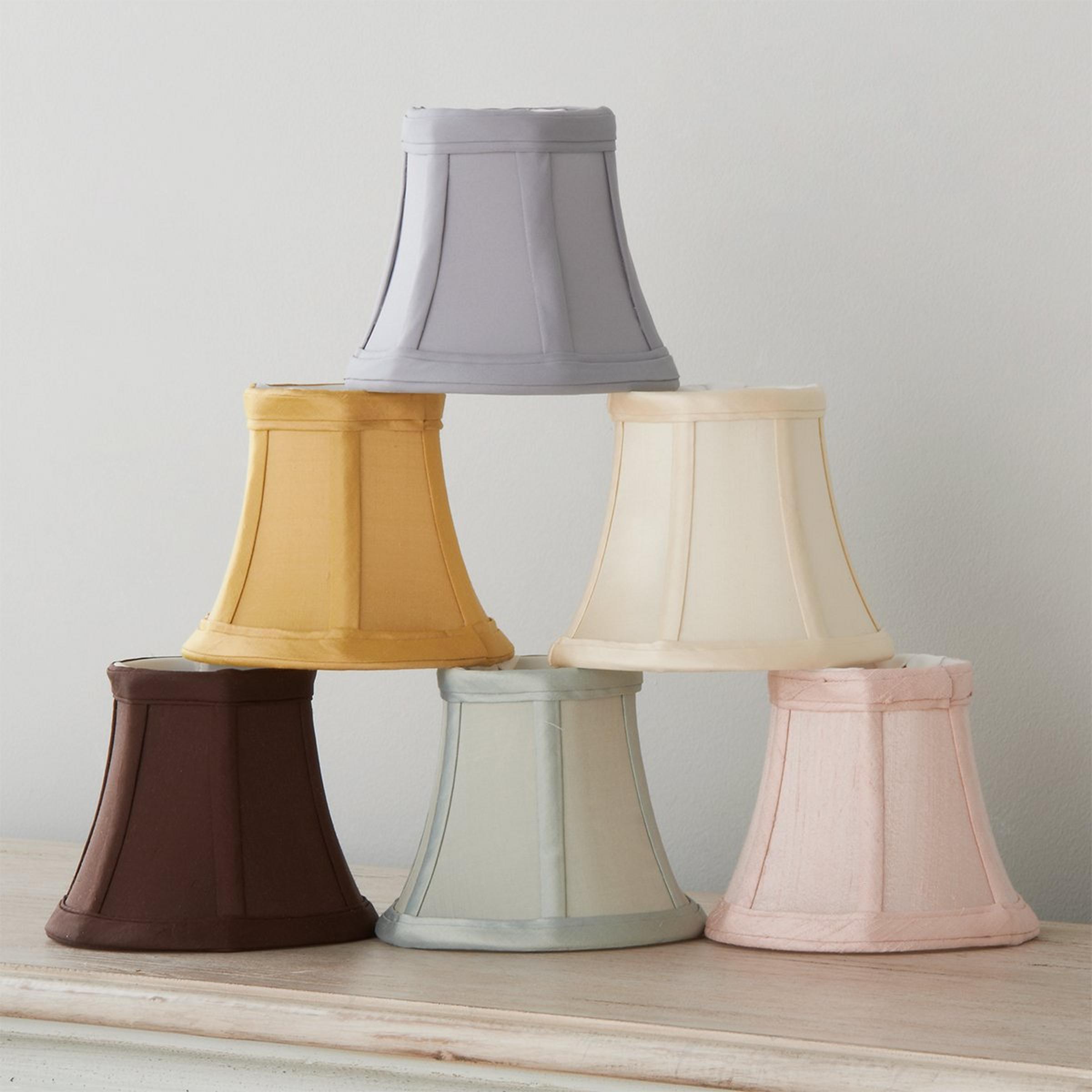 Dupioni Silk Bell Chandelier Shade: 3" Top x 5" Bottom x 4.25". 25 watts max. Clip on style. Made in America.