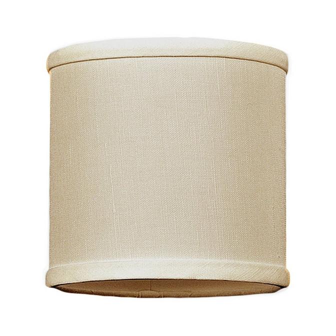5" replacement shade for bath lights and small pendants. Fits over socket that has screw ring to hold it on. 5" top x 5" bottom x 5" side. Hole size: 1 5/8". Beige linen with brass hardware or cream linen with silver hardware. <!--exclusive-->