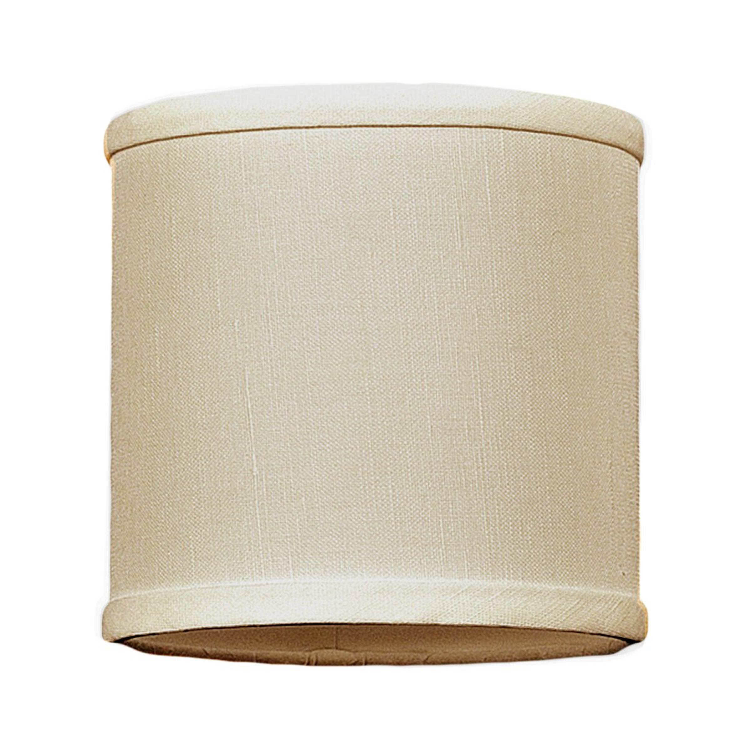 5" replacement shade for bath lights and small pendants. Fits over socket that has screw ring to hold it on. 5" top x 5" bottom x 5" side. Hole size: 1 5/8". Beige linen with brass hardware or cream linen with silver hardware. <!--exclusive-->