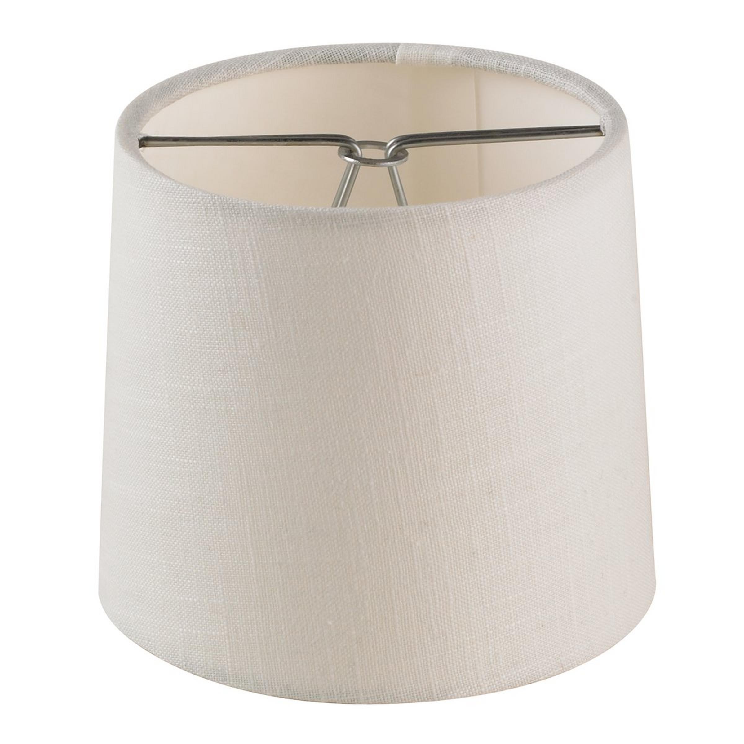 Add a touch of class to any chandelier or sconce with these linen drum chandelier shades. Rolled edge top and bottom. 100% linen. White. Silver candelabra clip. 4.5" top x 5" bottom x 4.5" side.