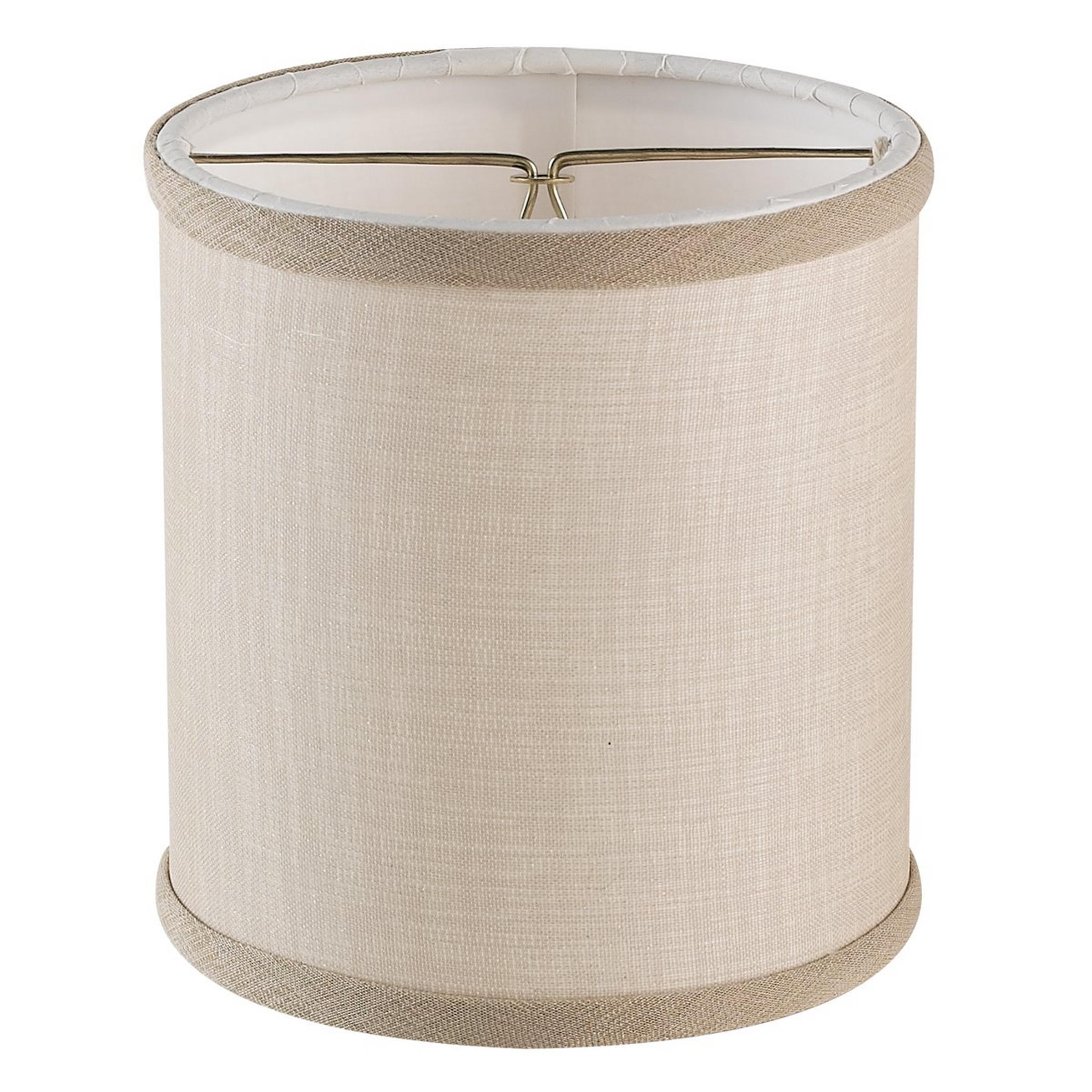 Sheer linen in a light tan with a darker beige trim makes this chandelier shade an elegant and neutral addition to a range of stylish lighting fixtures. (5.5"Hx5"W) Brass candle clip. Made in America.