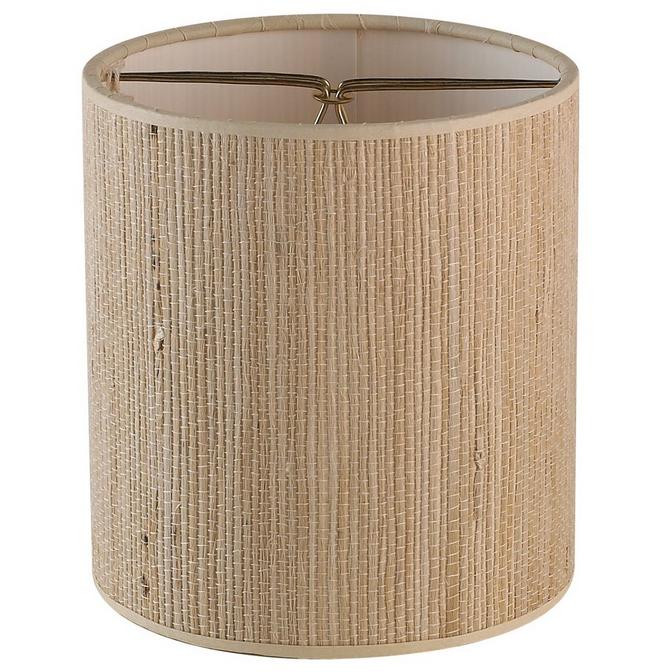 Add natural, rustic charm to your chandelier with this grass cloth chandelier shade, thickly woven for an interesting touch of texture. Available in four color combinations: Brown with Muted Burgundy trim, Tan with Tan trim, Natural with Ivory Trim, and Brown and Blue with Gold trim. (5"x5"x5.5"H) Brass candle clip. Made in America.