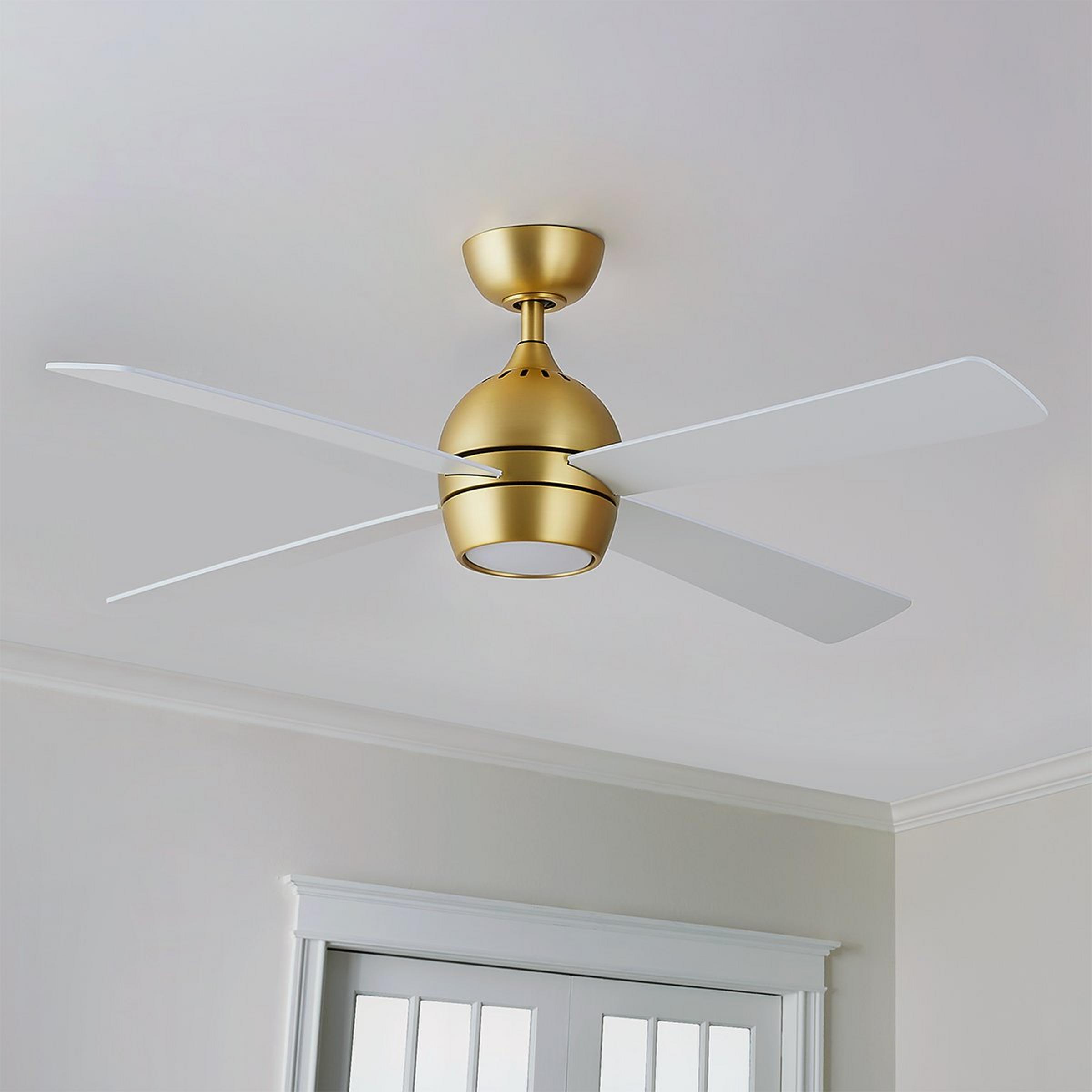 This contemporary ceiling fan blends traditional and modern fan design for a piece that will upgrade your space with the versatility to fit any decor theme. Constructed from plywood blades in a number of attractive finishes, a metal body, and a built-in light kit, this fan is perfect for adding extra light and airflow to any bedroom, living room, or kitchen.