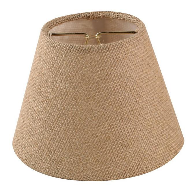 Empire hand rolled edge hard back burlap linen shade. Beige with white interior. Brass candelabra clip. 3.5"Tx6"Bx4.5"H.
