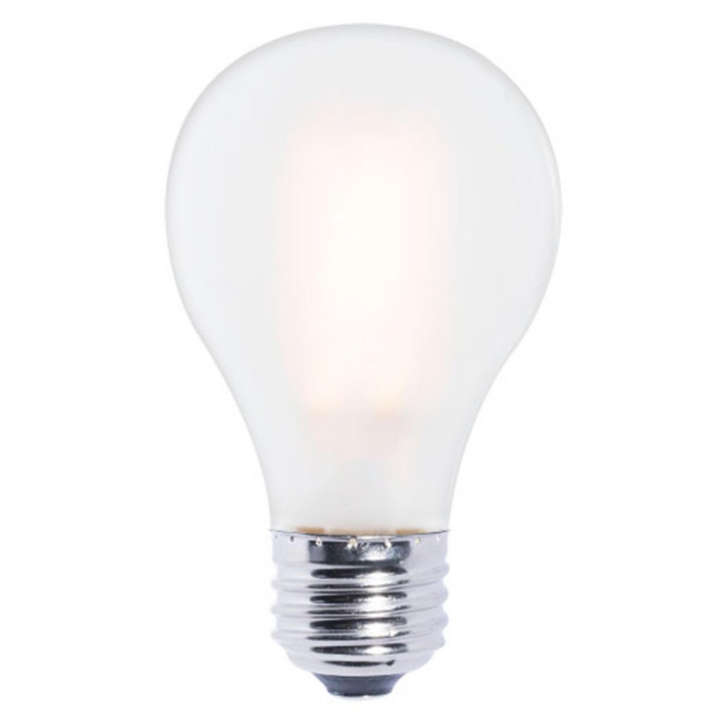 7 Watt Frosted LED (60 watt incandescent equivalent); 700 lumens; Edison-style; A19 bulb type; E26 base; Dimmable; Warm White Light; 2700K; 80 CRI. 4.13" length; 2.38" diameter. 15K average hours. UL Wet rated. Enclosed rated.