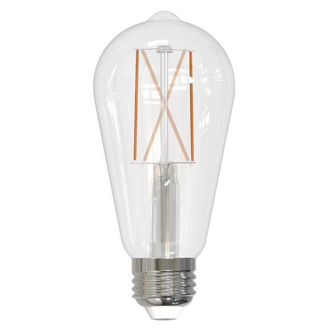 8.5 Watt Clear LED; 850 lumens; Edison-style; ST18 bulb type; E26 base; Dimmable; Soft White Light; 3000K; 90 CRI. 5.04" length; 2.28" diameter. 15K average hours. This vintage filament bulb will brighten up your space while maintaining an eye-catching vintage-inspired look.