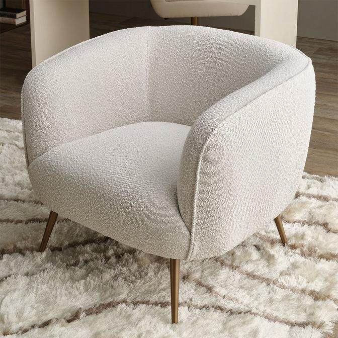 The Abrazzo Accent Chair is a comfortable and stylish lounge chair that is designed to make a statement in any modern environment. It features a bold and elegant curved frame, with stainless steel legs that are tapered and finished in a gold color. The chair comes in a choice of soft and luxurious neutral fabrics, making it a versatile option that can fit in with any decor style.