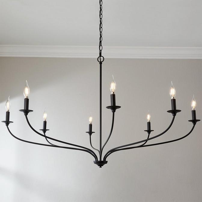 The Alainey chandelier adds fashion-forward style to any space by reimagining traditional candlelight through a modern lens. With graceful sleek curves, saucer-like bobeches, and exposed candelabras, this chandelier is perfect for anyone looking to add charm while symbolizing opulence and class. Its clean lines offer timeless versatility and invite conversation in a variety of living areas. Alainey adds soft warmth, lending understated simplicity to dining rooms, entryways, or comfortable gathering spaces.