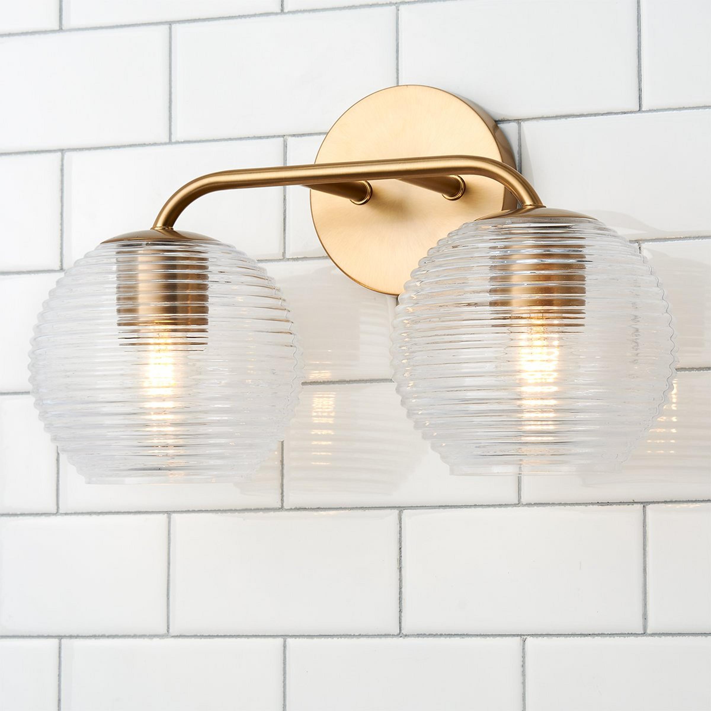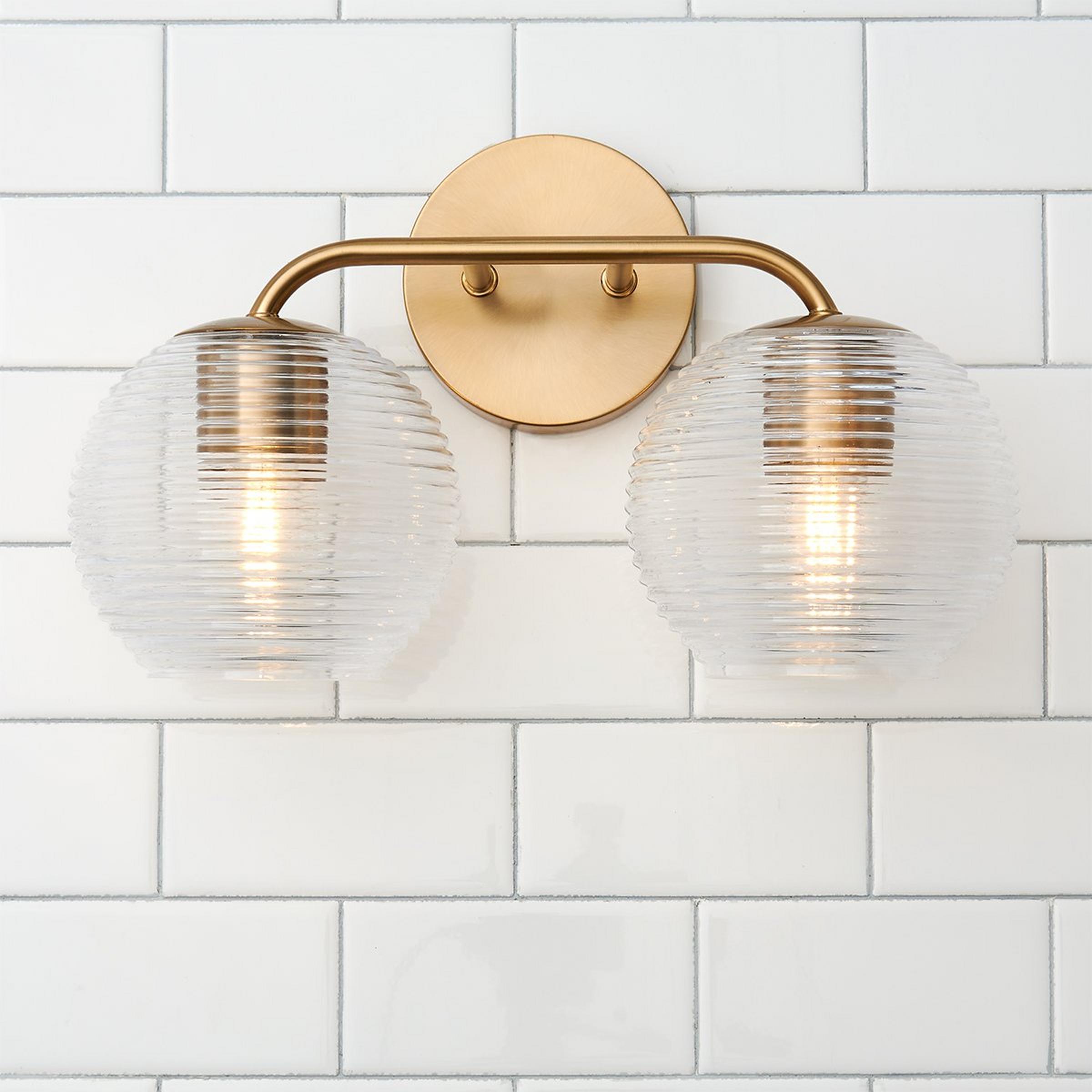 The ribbed texture of the glass adds visual depth and a distinct style taking vanity lighting to the next level. This Art Deco design lends a timeless and versatile appeal to create the prominent fashion-forward lighting solutions of the Alainey collection.
