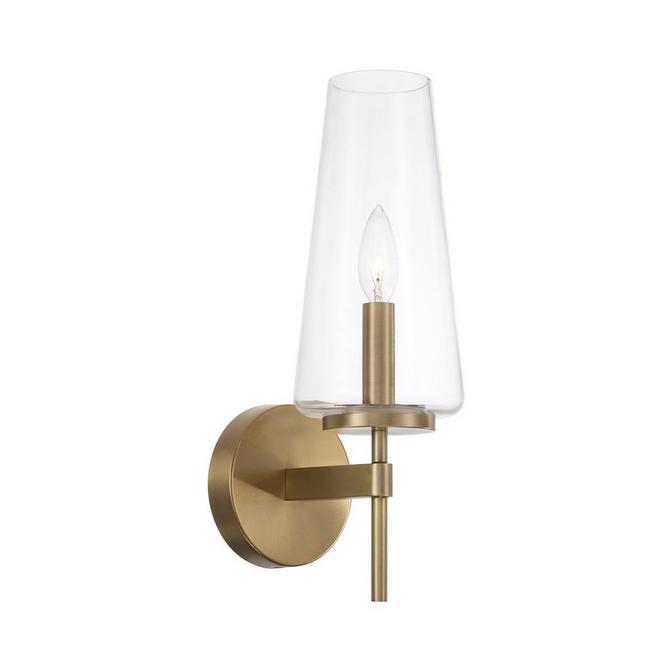 The Alonso Collection takes center stage with its striking, elongated tapered shade, beautifully showcased in this stunning bath sconce. This design not only illuminates your space but also adds a touch of elegance and sophistication to your bathroom. Playing with proportions, the cylindrical shade sits atop the slim frame for a sleek and sophisticated look that can elevate hallways and dining rooms. The rounded backplate enhances its subtle silhouette, providing a perfect way to incorporate color or match your existing fixtures.