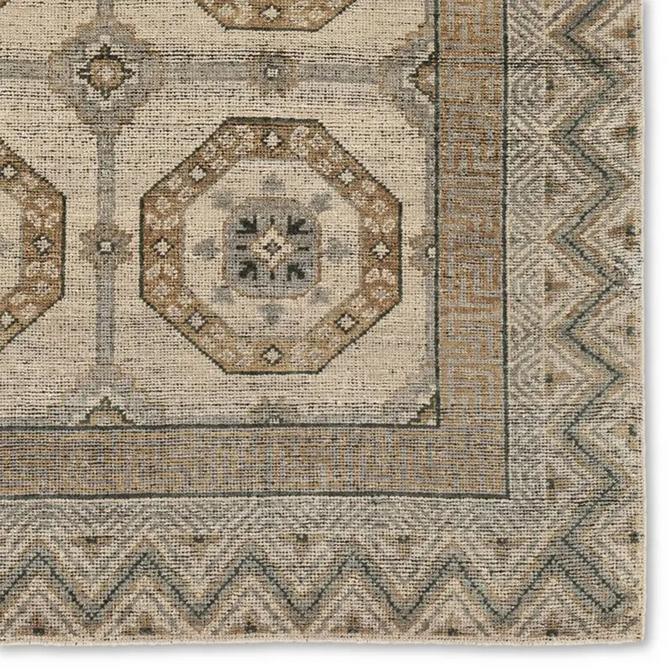 This rug uses two contrasting borders to blend together lines that dynamically zig-zag and calmly meander. The pattern is emboldened by a grand gridwork of octagonal medallions fit for a study or living room. The meticulously hand-knotted construction of the rug requires a lengthy multi-step process to make, ensuring durability and longevity.