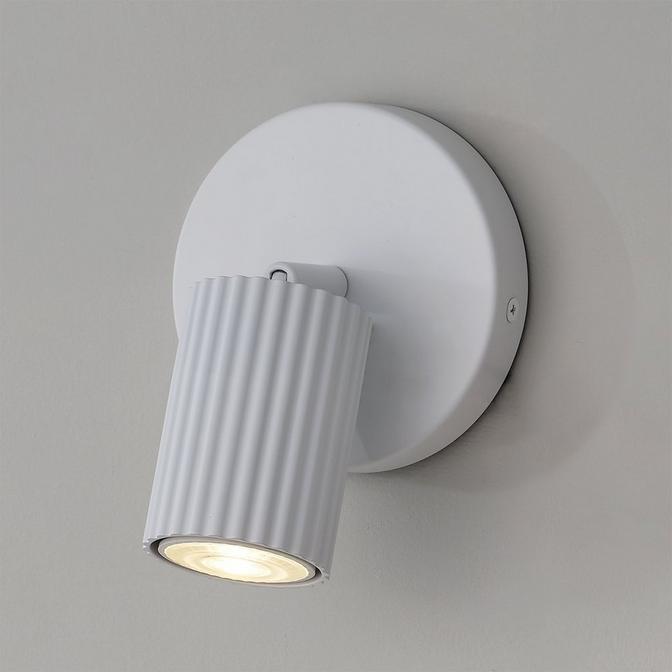 Aperture's unique corrugated shade makes for a sophisticated and industrial look! Its elongated drum shape complements an ultra-modern style and creates a distinct look. Enhance your space with this elegant and striking sconce.