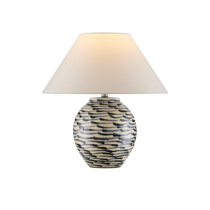 Paint strokes swim through this table lamp's neutral ceramic tones, creating a pattern through contrast and color. From the hand-painted design to the intentionally cracked finish, this lamp showcases a love of simplicity and celebration of handmade craftsmanship. Its wide tappered shade spreads out and illuminates your space with a soft glow. Due to the nature of this ceramic base and its hand-painted design, no two lamps will be identical. Embrace the beauty of human nature by pairing two lamps together or showcasing one as a unique piece of art.