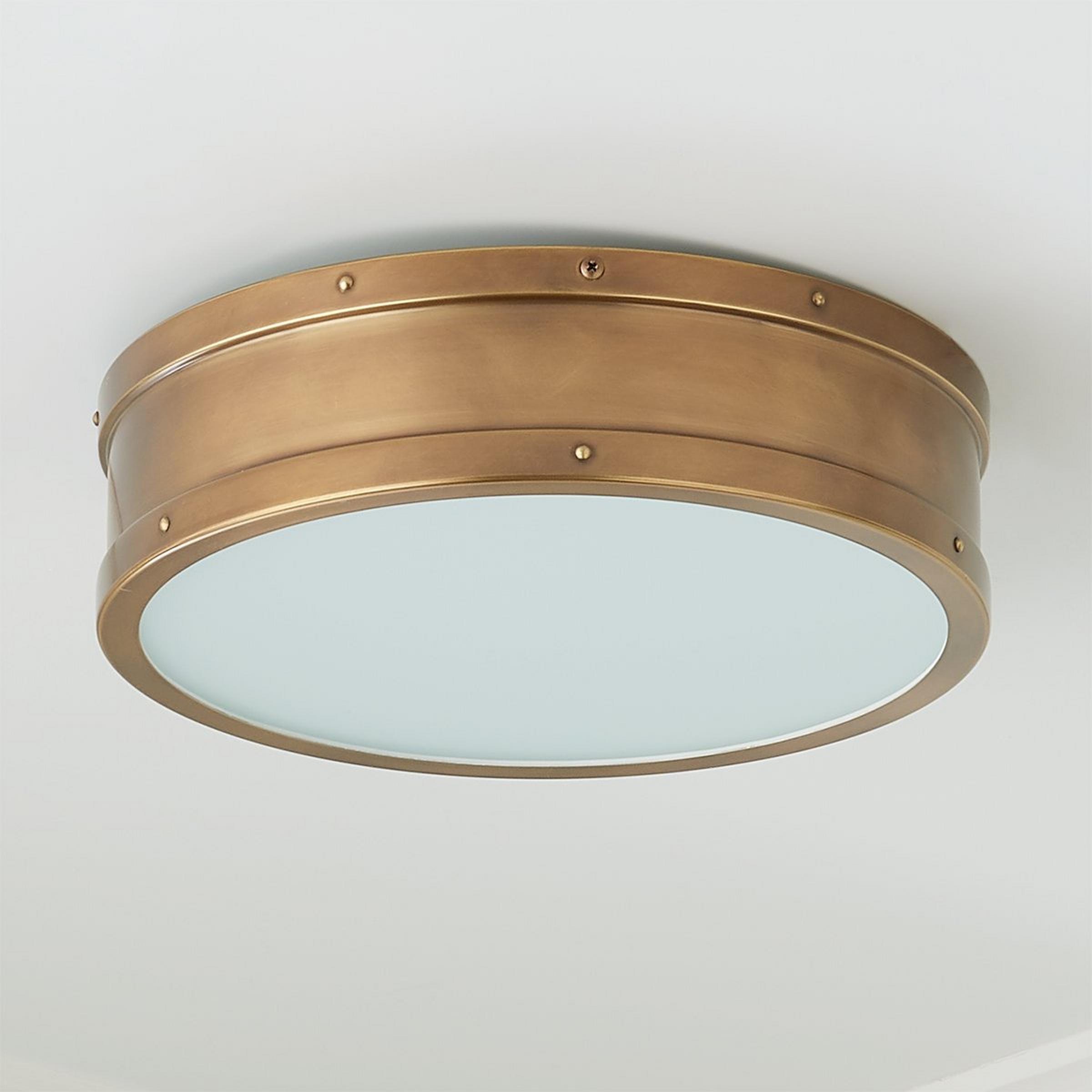 With a nautical personality and an industrial build, our Arleigh Ceiling Light is a model that can mold into a variety of motifs. The riveted details add an extra adornment to complete its urban exterior.