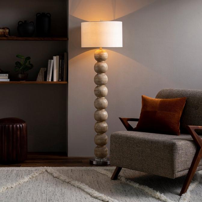 This contemporary floor lamp combines form and function seamlessly with an eye-catching stacked sphere design. It serves as a stunning decorative accent while simultaneously providing ample illumination.