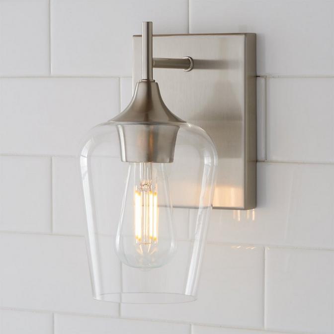 This elegantly minimalist collection brings refined beauty with a classically shaped clear glass shade. The gentle taper of the shade is accented by the simple square backplate and understated bar body.