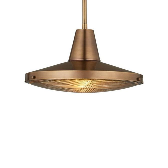 Our Astern Outdoor Pendant enhances its simple silhouette with dramatic flourishes and rich metallic coloring. Its tapered shape boasts a realistic patina that leans into its more industrial inspiration for a look that feels like your light could illuminate a ship at sea. The fluted glass diffuser lends this light a stateliness that complements its heritage appeal. Perfect for elevating your outdoor space with timeless charm and durable style, this piece illuminates with a look of classic refinement.