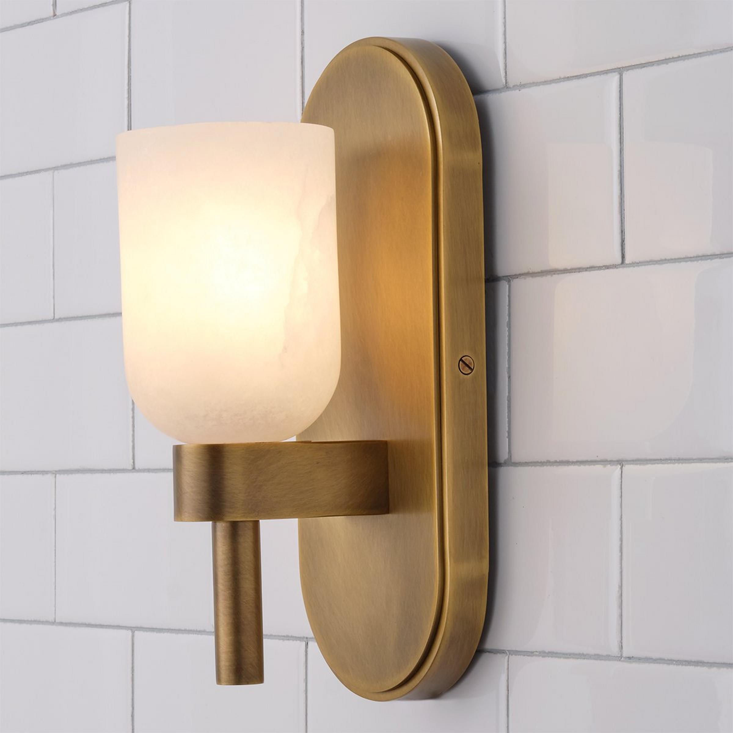 The elegant, classic design of the Aurind collection includes modern curves coupled with natural alabaster. Alabaster is a natural stone, so veining and tone variations are meant to be celebrated as they impart an exclusive quality to each light.
