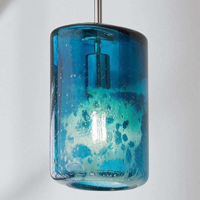 Stunning swirls of color and bubbly inclusions in this glass pendant make this fixture resemble a clear, starry sky. Because of the nature of art glass, variations in color, pattern, and texture should be expected and celebrated; no two art glass pieces are exactly alike, making each of these lovely fixtures truly one-of-a-kind! This fixture is assembled by hand in our Richmond, Virginia production facility.