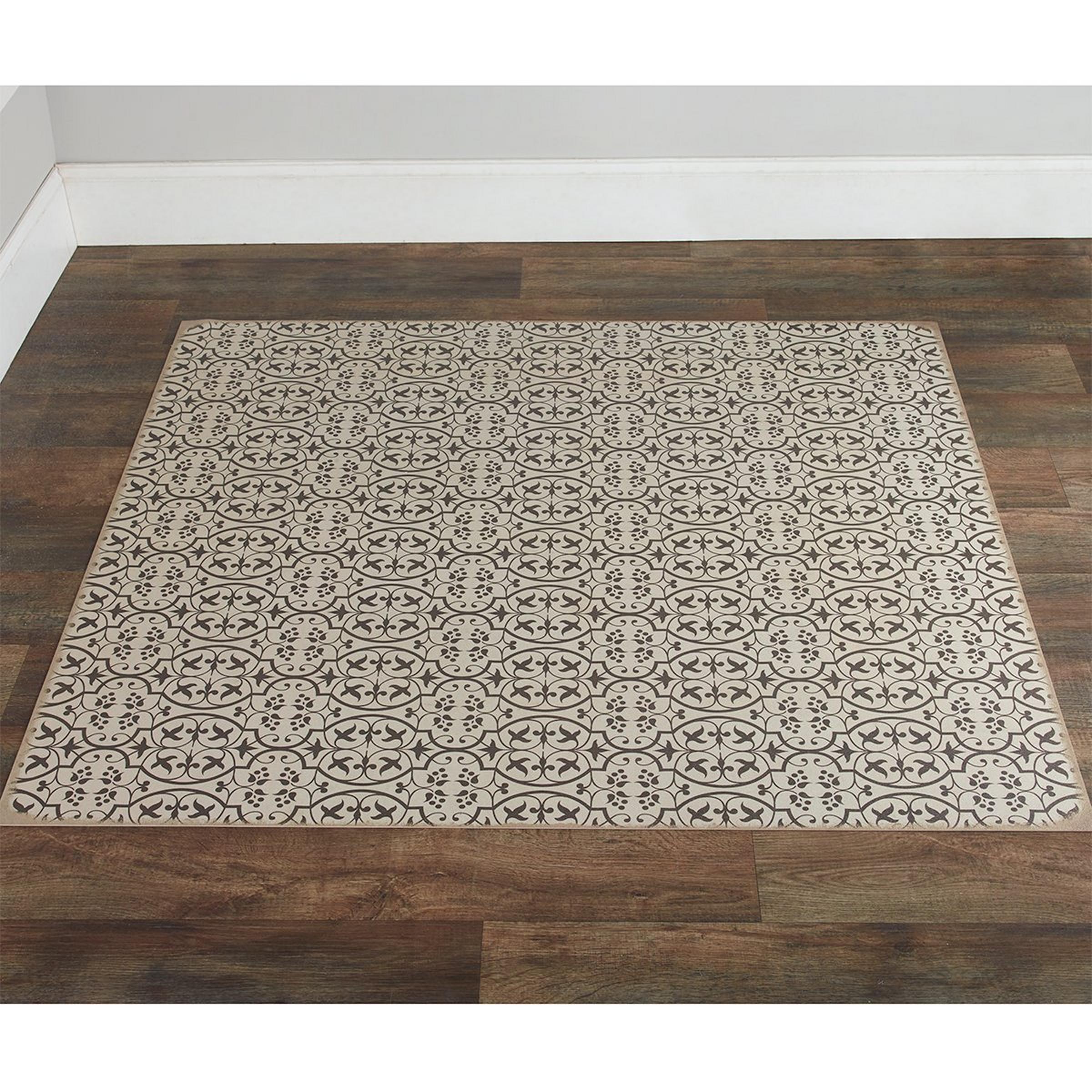 What is a vinyl floorcloth? If you've never encountered this floor covering solution before, you're in for a real treat! Inspired by old floor cloths and vintage linoleum, these vibrant vinyl floor runner mats offer warm colors with beautiful aged details printed on sheets of non-stick vinyl. The indoor / outdoor Austin Vintage Vinyl Floorcloth features stylish and subtle floral motifs. These vintage-look vinyl floorcloths are durable and flexible with a non-stick surface. These mats are also very easy to clean and lay flat. Runners and square sizes are great for kitchens, baths, and offices, they can even be used as a weather-resistant outdoor mat in controlled outdoor settings, or in a screened in porch. Due to the unique printing process, some variation in color may be expected. Made to order with a current lead time of approximately 6 weeks.