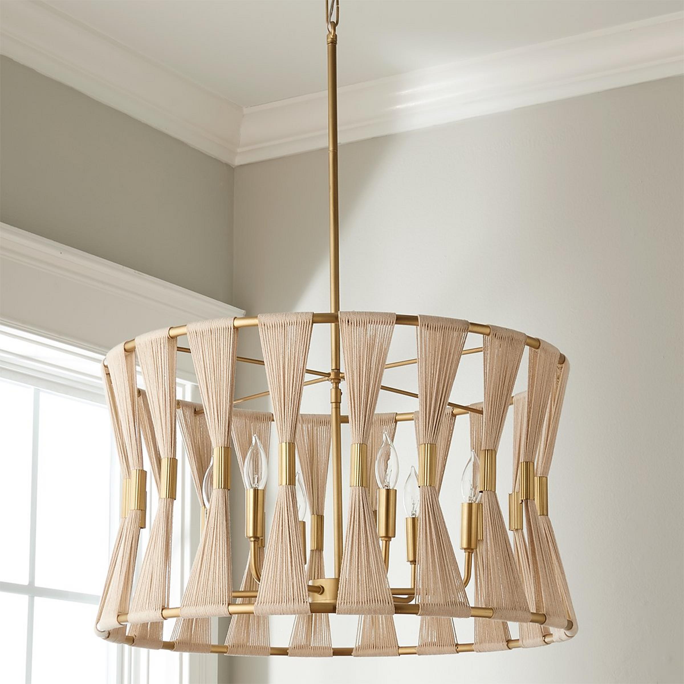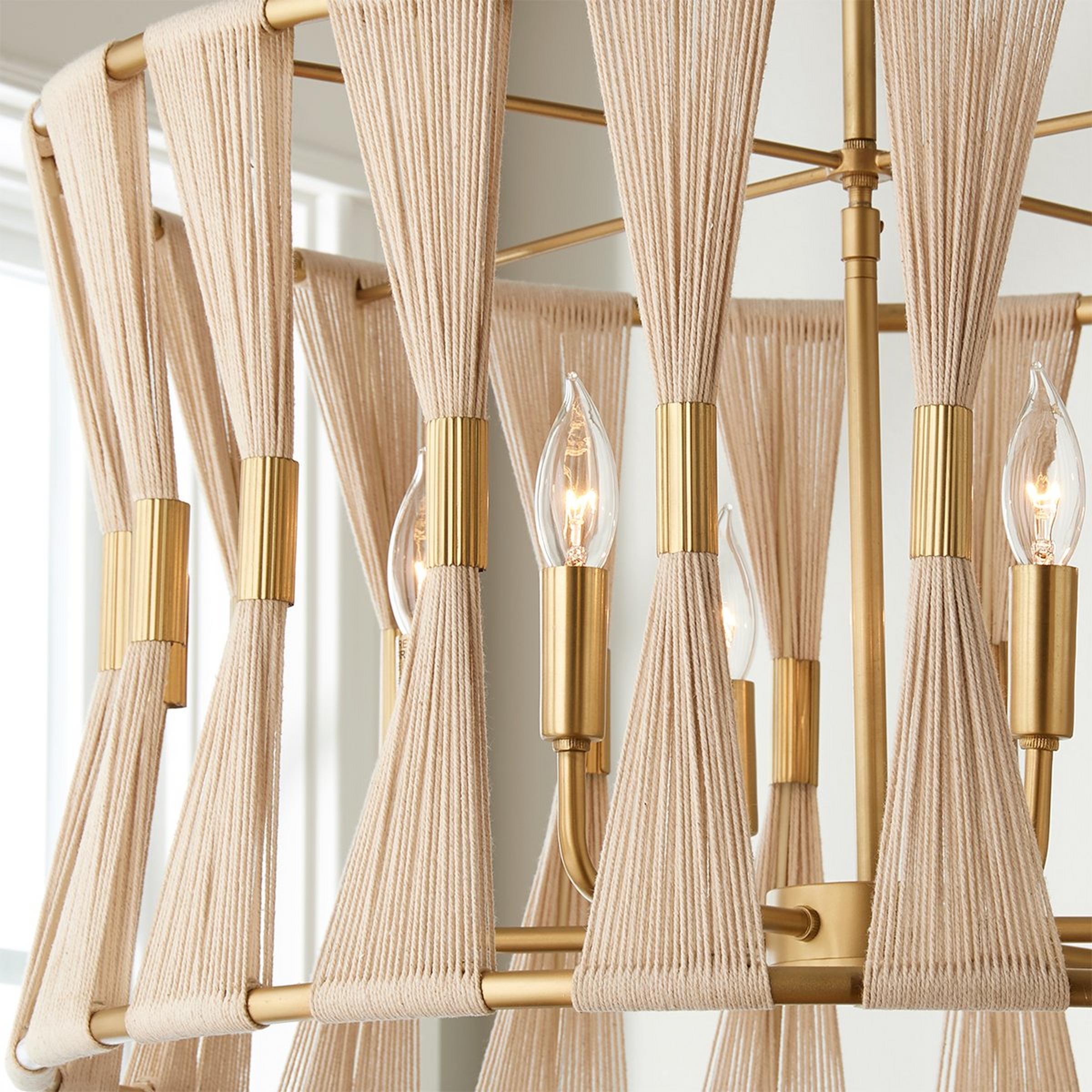Our Axel Collection emits subtle drama in a modern form. Each cinched detail is adorned by patinaed brass for a mixed contrast of metallic finishes versus natural rope. These mid-century designs are updated for today's trends, keeping your home sleek and stylish. This fixture has handcrafted details, meaning subtle variation from piece to piece makes each light unique. The natural ivory rope is hand-bleached, the rope is hand-wrapped, and the brass patina is hand-applied.