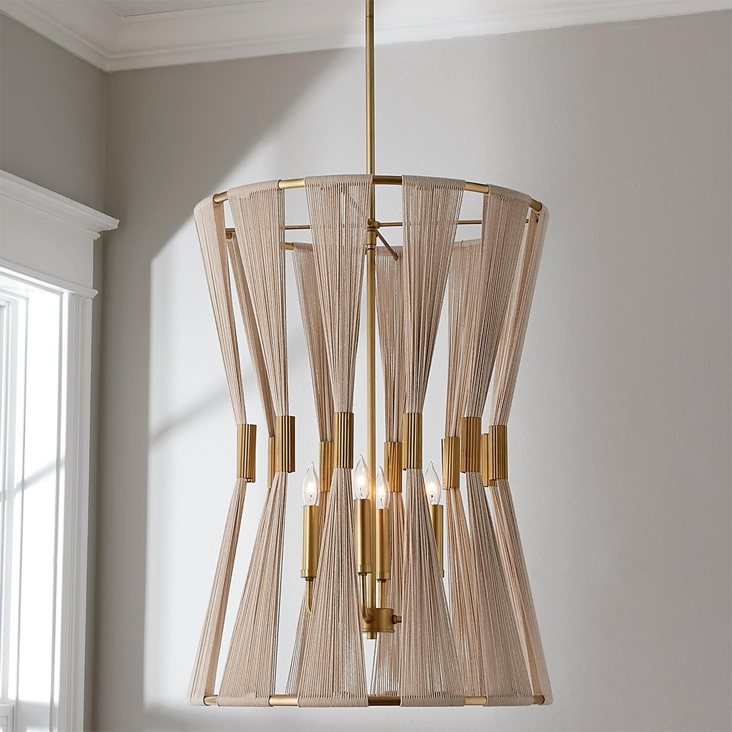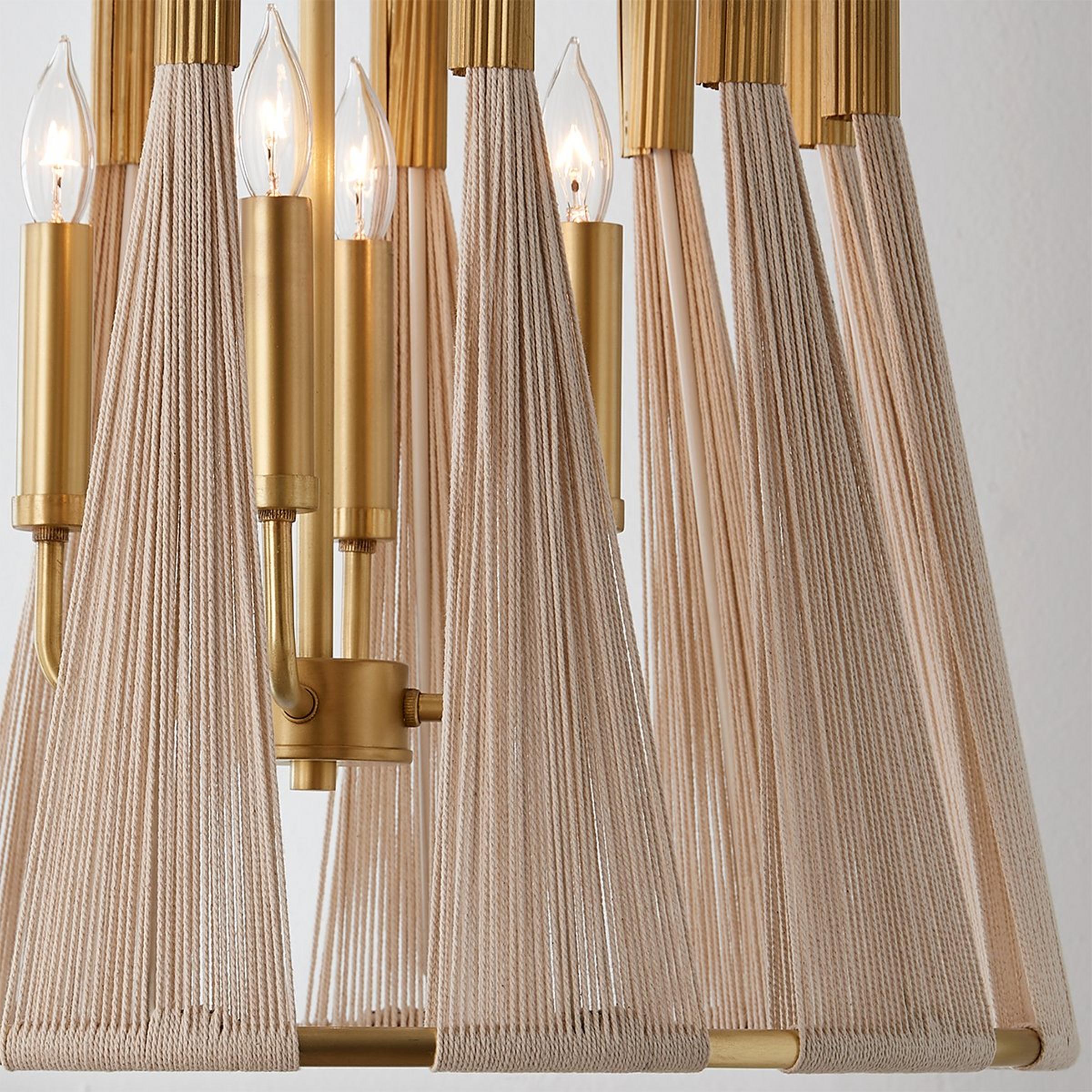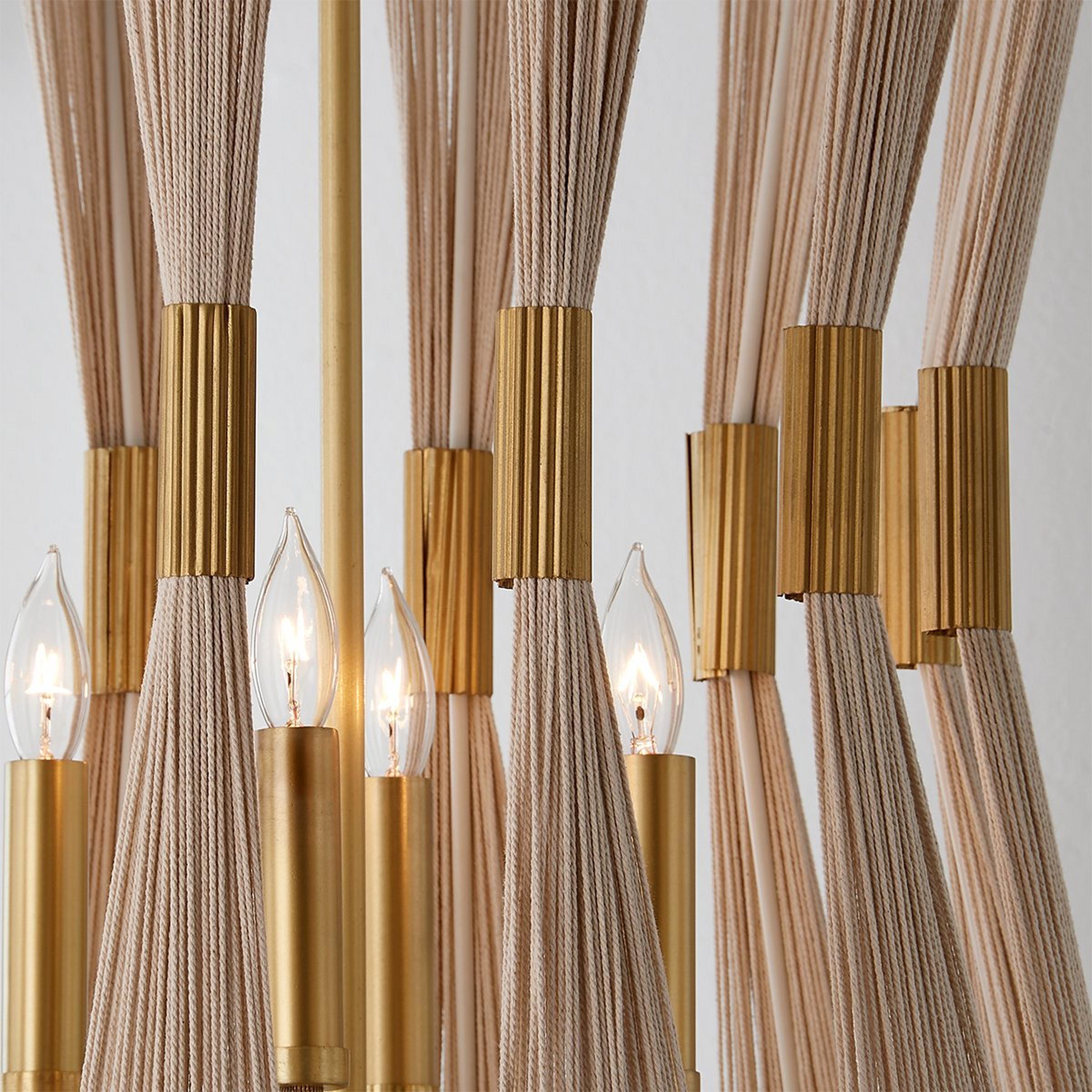 Our Axel Collection emits subtle drama in a modern form. Each cinched detail is adorned by patinaed brass for a mixed contrast of metallic finishes versus natural rope. These mid-century designs are updated for today's trends, keeping your home sleek and stylish. This fixture has handcrafted details, meaning subtle variation from piece to piece makes each light unique. The natural ivory rope is hand-bleached, the rope is hand-wrapped, and the brass patina is hand-applied.