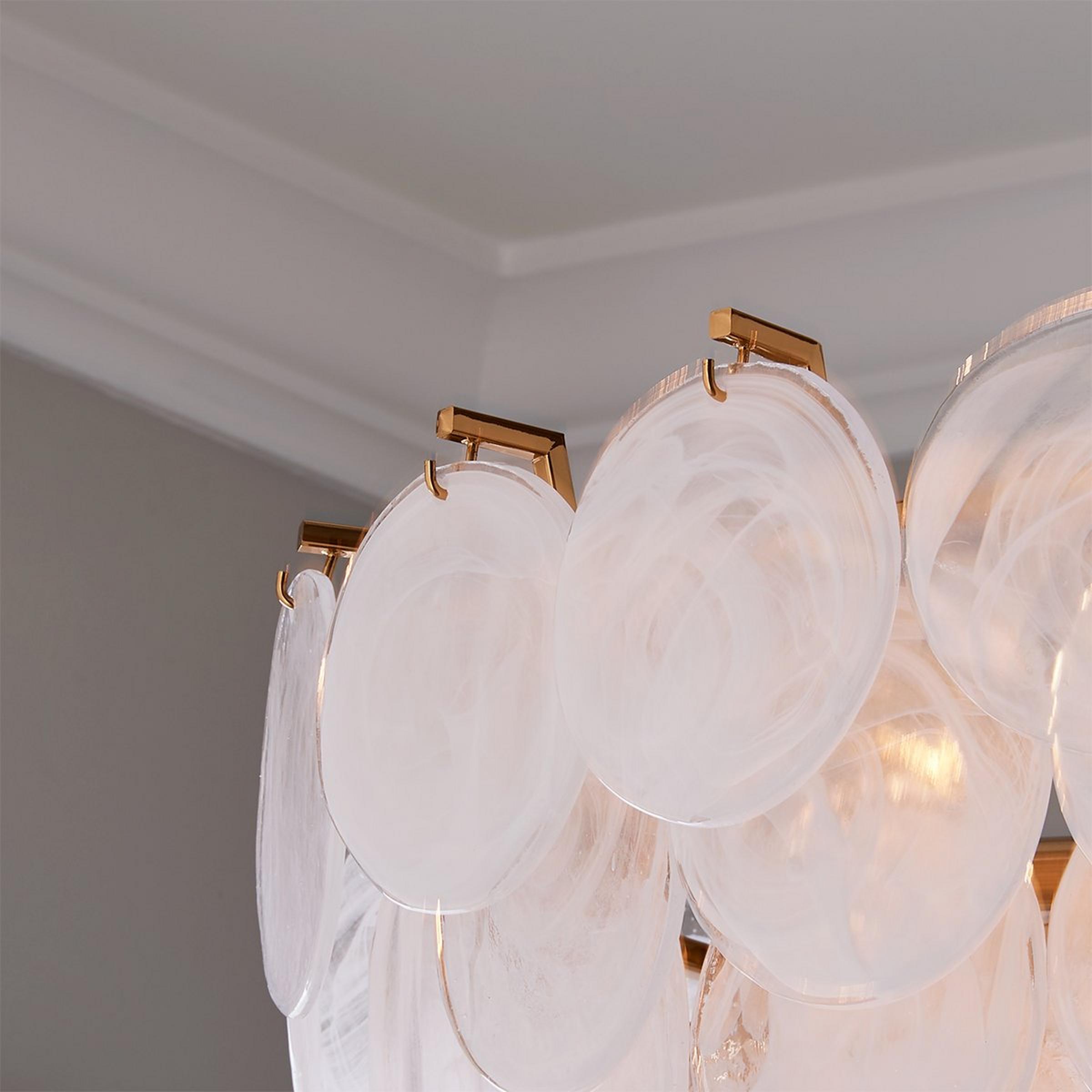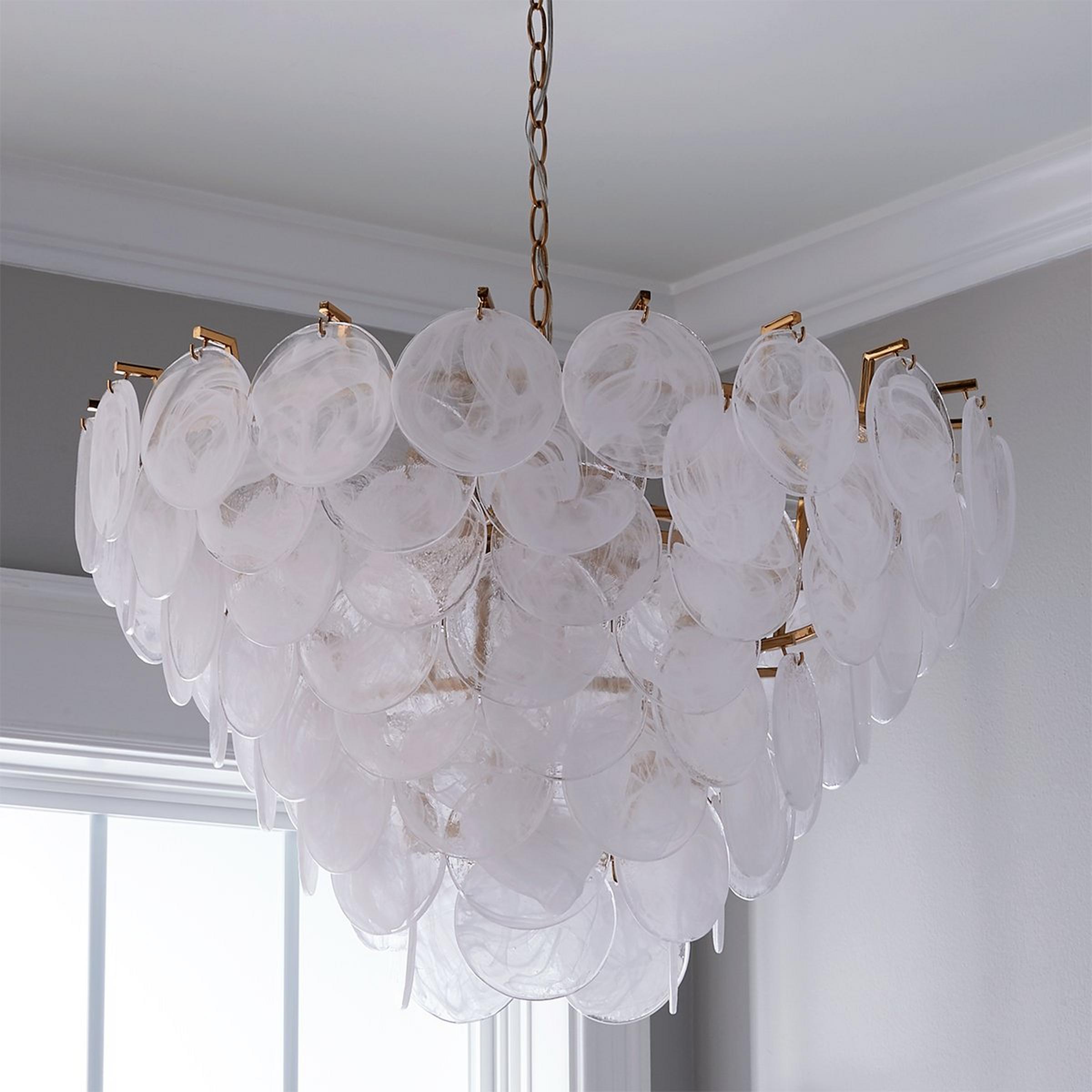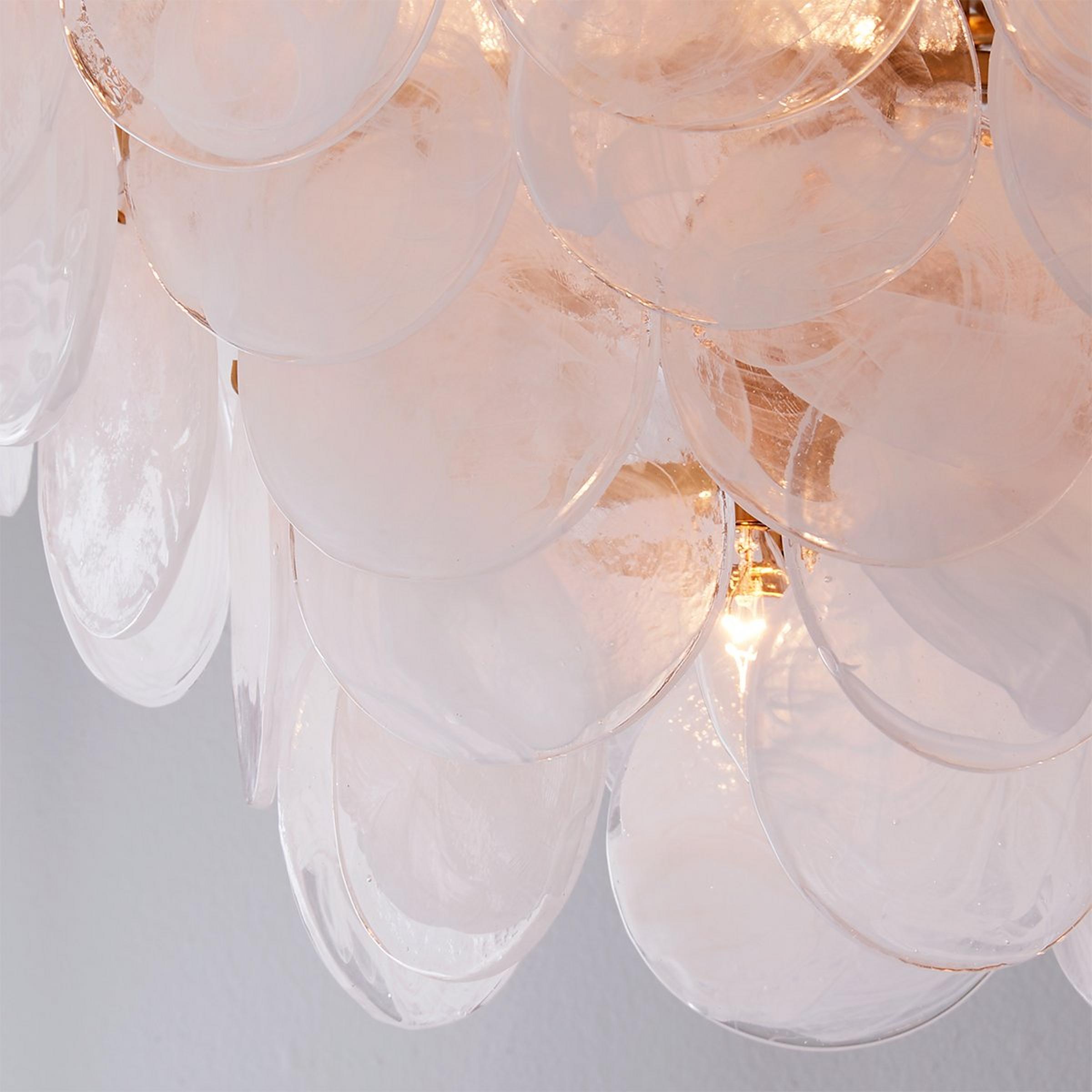 We are blown away by the design of our Bali Shell Chandelier. This elegant silhouette is crafted from layers of translucent swirled glass shells, showcasing a natural soft aesthetic. A rose-pink tint of diffused light will shine through to your upscale dining room or your classic beachy bedroom.