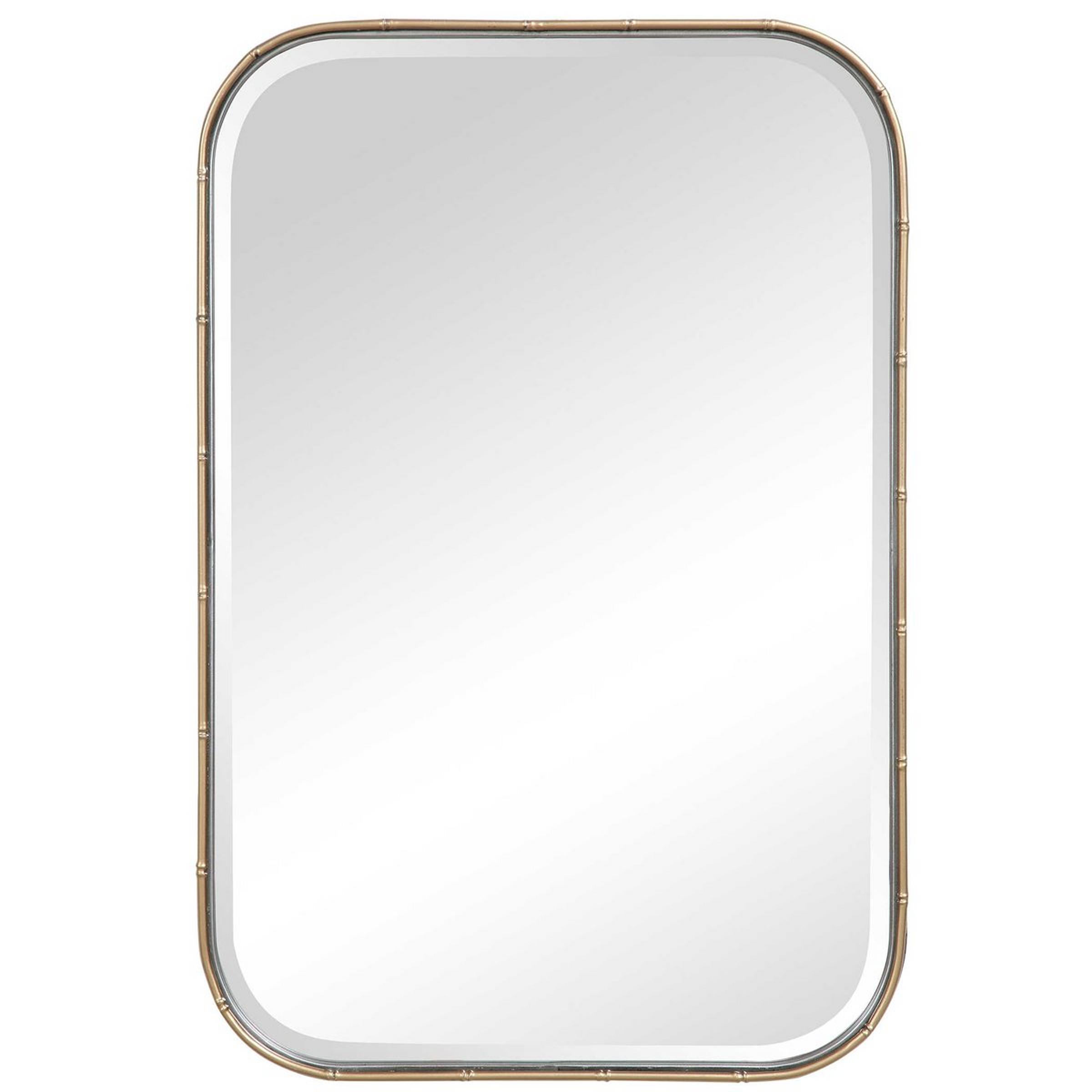 Our Bamboo Border Mirror has a decadent style with a simple shape and frame. With a slight Asian inspiration attached to its personality, the aged gold leaf structure and beveled edge add panache to this piece for your foyer or bathroom.