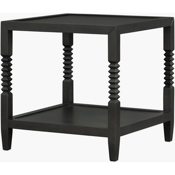 The Bandoneon End Table highlights the versatility of simple shapes, from the bold lines of its compact silhouette to the accordion detailing on the legs; its square motifs feel fresh and playful. A delightful blend of contemporary leanings, this table's straightforward shape complements even more classic styles with ease. Its subtle woodgrain shines through the deep coloring, adding a beautiful richness to its oak veneer. The perfect couch companion, this table's small shelf provides additional storage for a living room or common area.