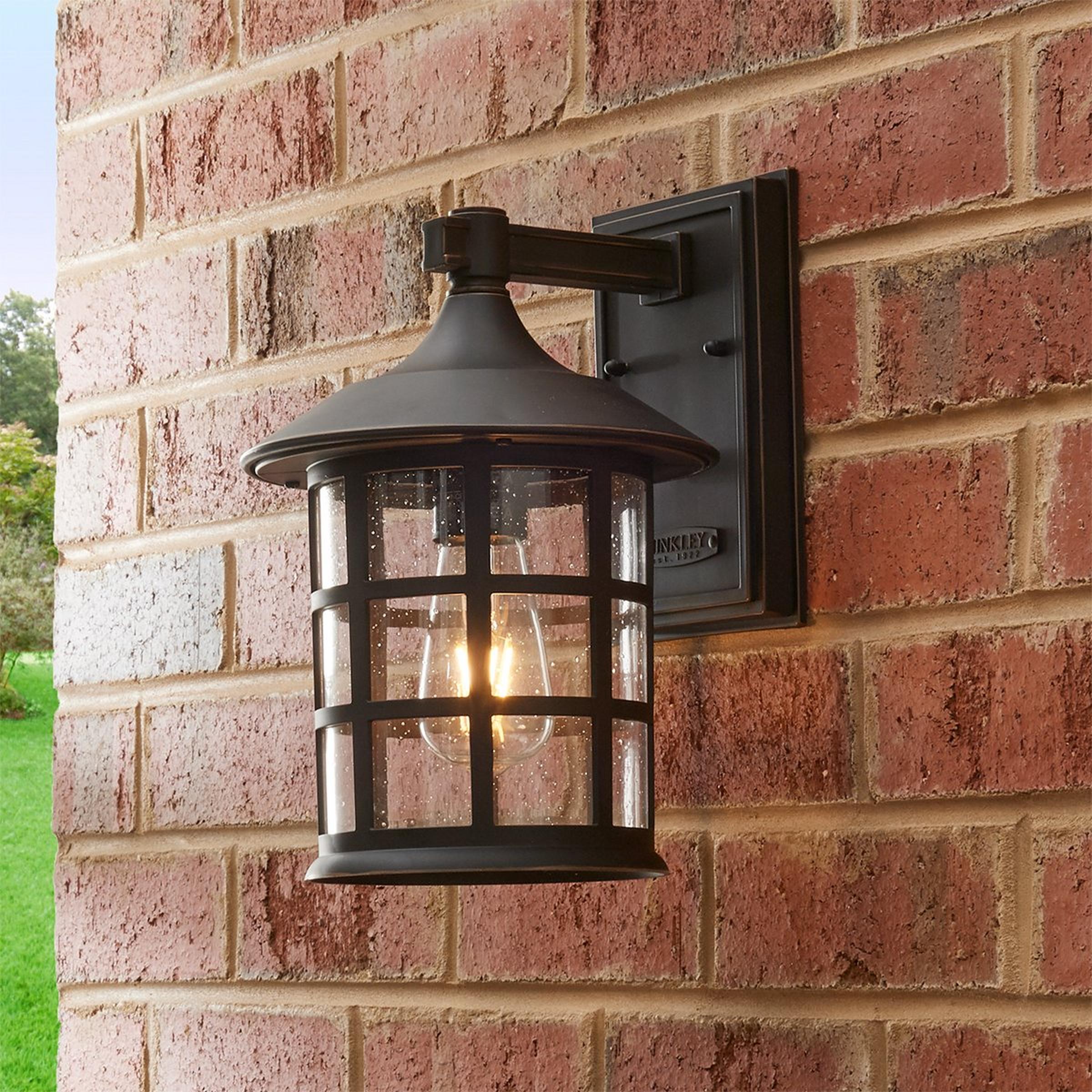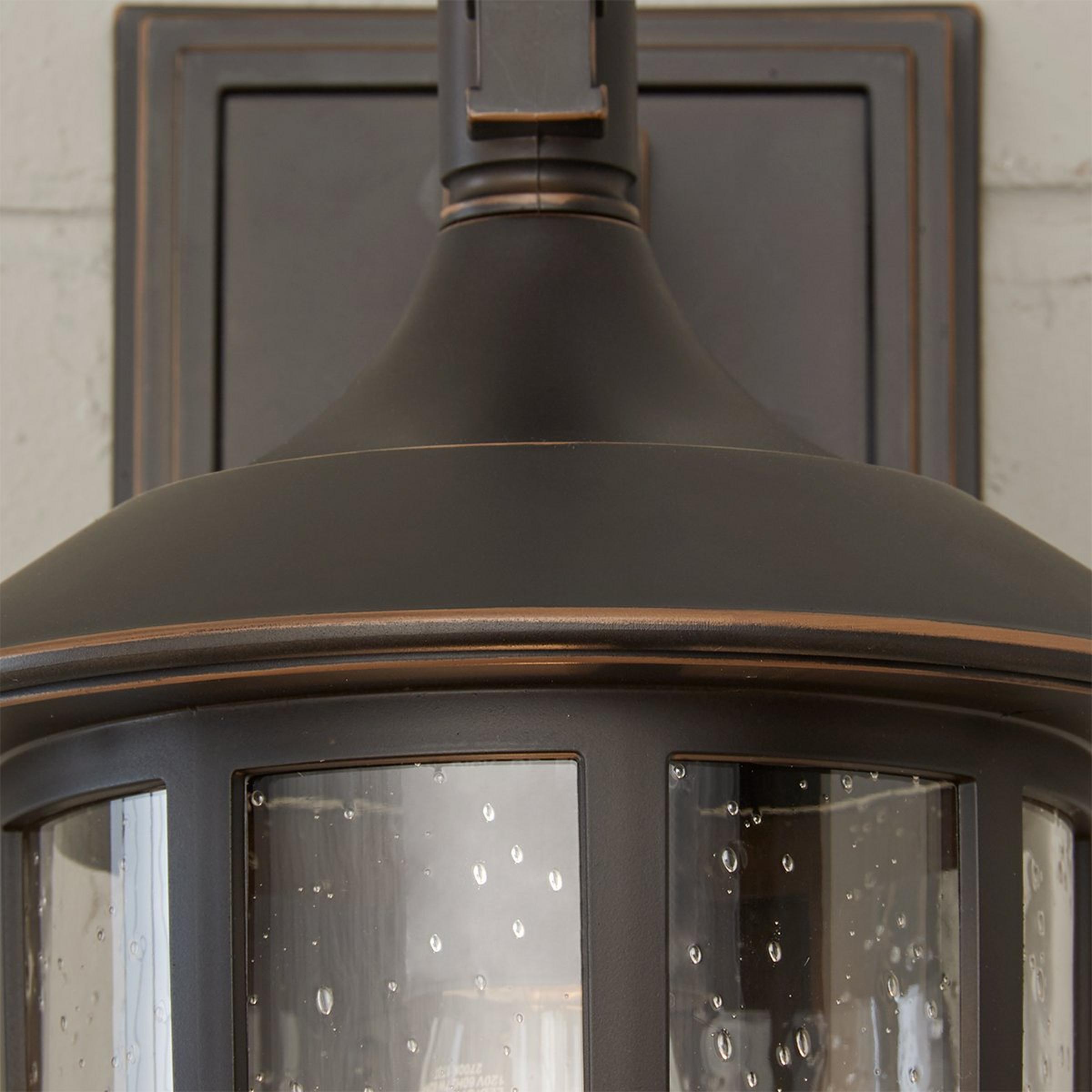 With its name inspired from one of New England's favorite destinations, the Bar Harbor Outdoor Sconce will impart a nautical theme with its shining beacon of light. The wrap around grid protects the seedy glass shade and the tiered top adds another decorative extra. Rust and corrosion resistant.