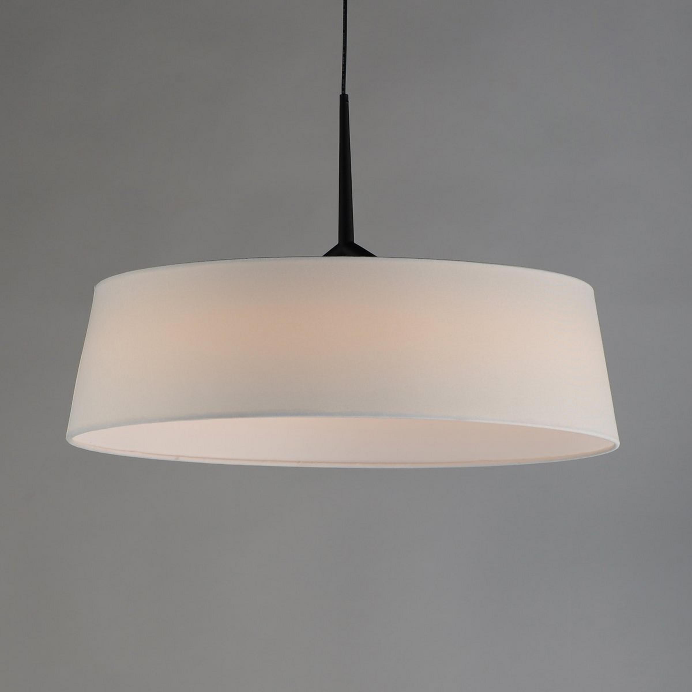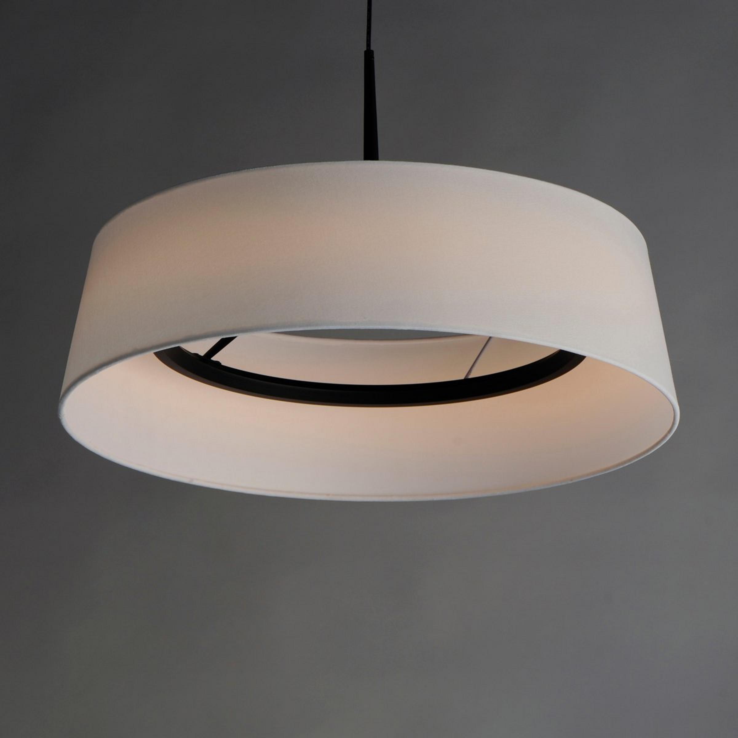 This LED ceiling light beautifies a space with simplicity. The wide drum shade emphasizes the horizontal lines present in the design, mimicking the horizon of a potential seaside viewable from a nearby window. Inside the shade, an Integrated LED ring ensures that light spreads smoothly and evenly across a dining space, hall, or bedroom.