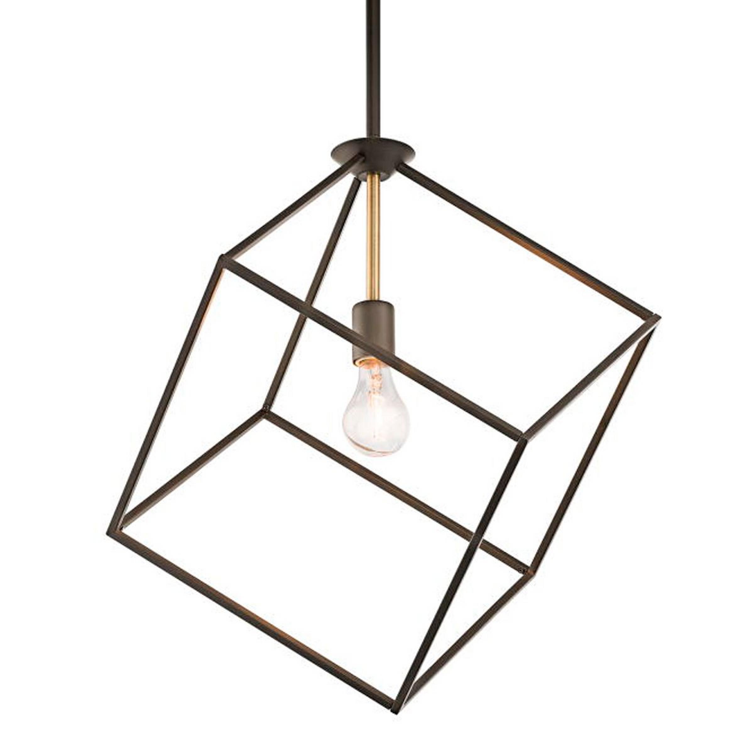 The asymmetrical design and use of mixed metals adds a modern element to this stately pendant. The brass accents on the bronze finish create a handsome sophisticated look. Add one of our Edison bulbs for a vintage urban style.