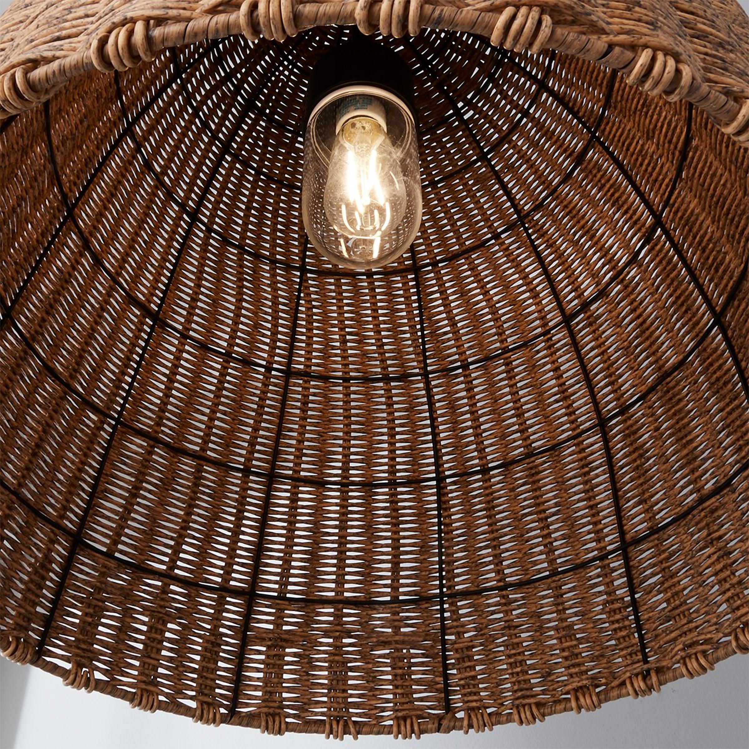 Our Beach Bungalow fixtures will give your space that updated coastal feel with rattan-like woven material forming into a domed basket. A member of the Coastal Living Collection, this piece can be used in interior and exterior locations to enhance your coastal or boho aesthetic.