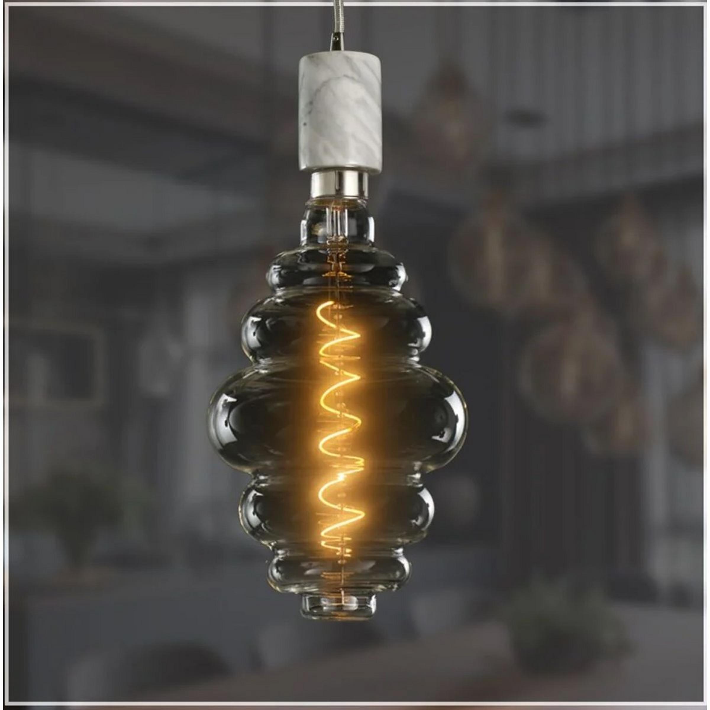 The Beehive glass pendant features an oversized, grand size LED bulb. Included in this kit is one white marble finish pendant with a medium screw socket and one 15" beehive shaped LED dimmable bulb, with 4 watts of power, emitting a soft amber glow in a clear glass and medium screw base. The amber golden light of the Beehive pendant will provide a warm and cozy feeling in your home or restaurant.