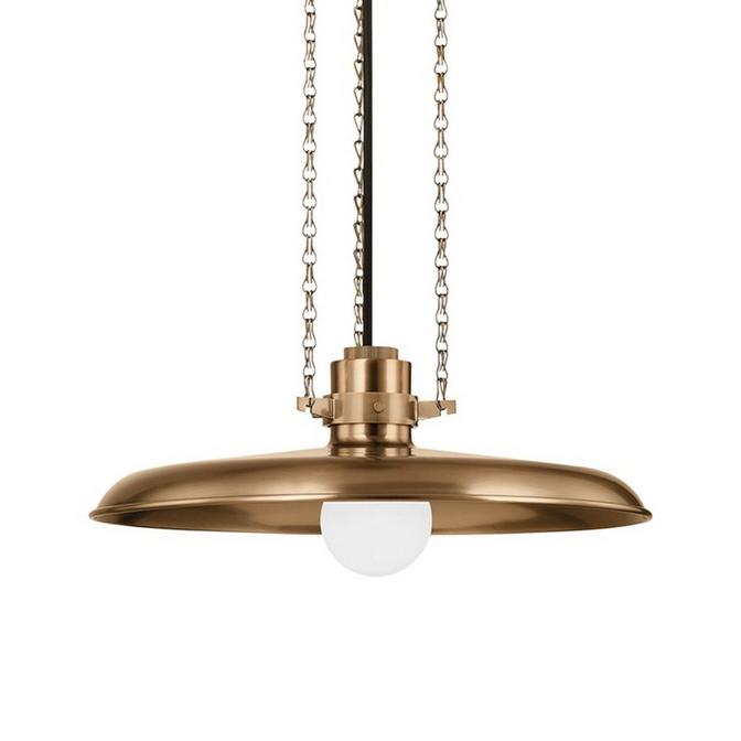 The Bickford Pendant draws inspiration from antique reflector lamps while updating the design for modern times. The industrial style is retained, allowing raw materials like metal hardware and chain to function as decorative elements in themselves. Light from this fixture shines downward due to the opaque shade, creating an optimal task zone above a desk or reading nook.