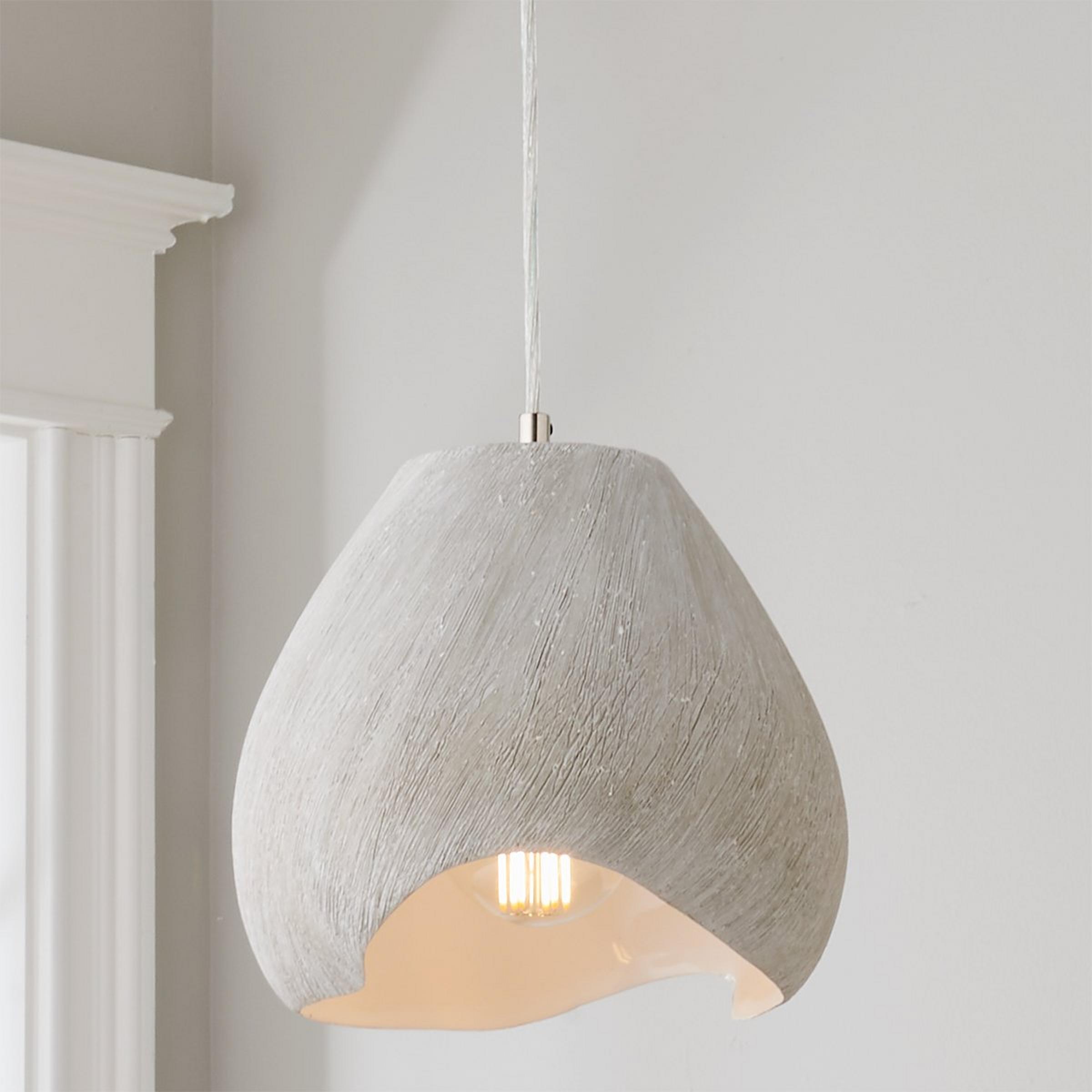 Inspired by bleached out coral, this oblong ceramic pendant is a fun, updated nautical addition to any space. This pendant is assembled by hand in our Richmond, Virginia production facility. Due to the nature of this pendant no two will be exactly alike in textured pattern or color.