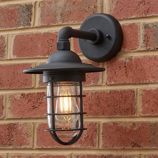 Straight from a boathouse, this wall light is perfect for a porch or patio. The encased glass shade is protected by a cylinder grid-like exterior. This industrial fixture will brighten your path.