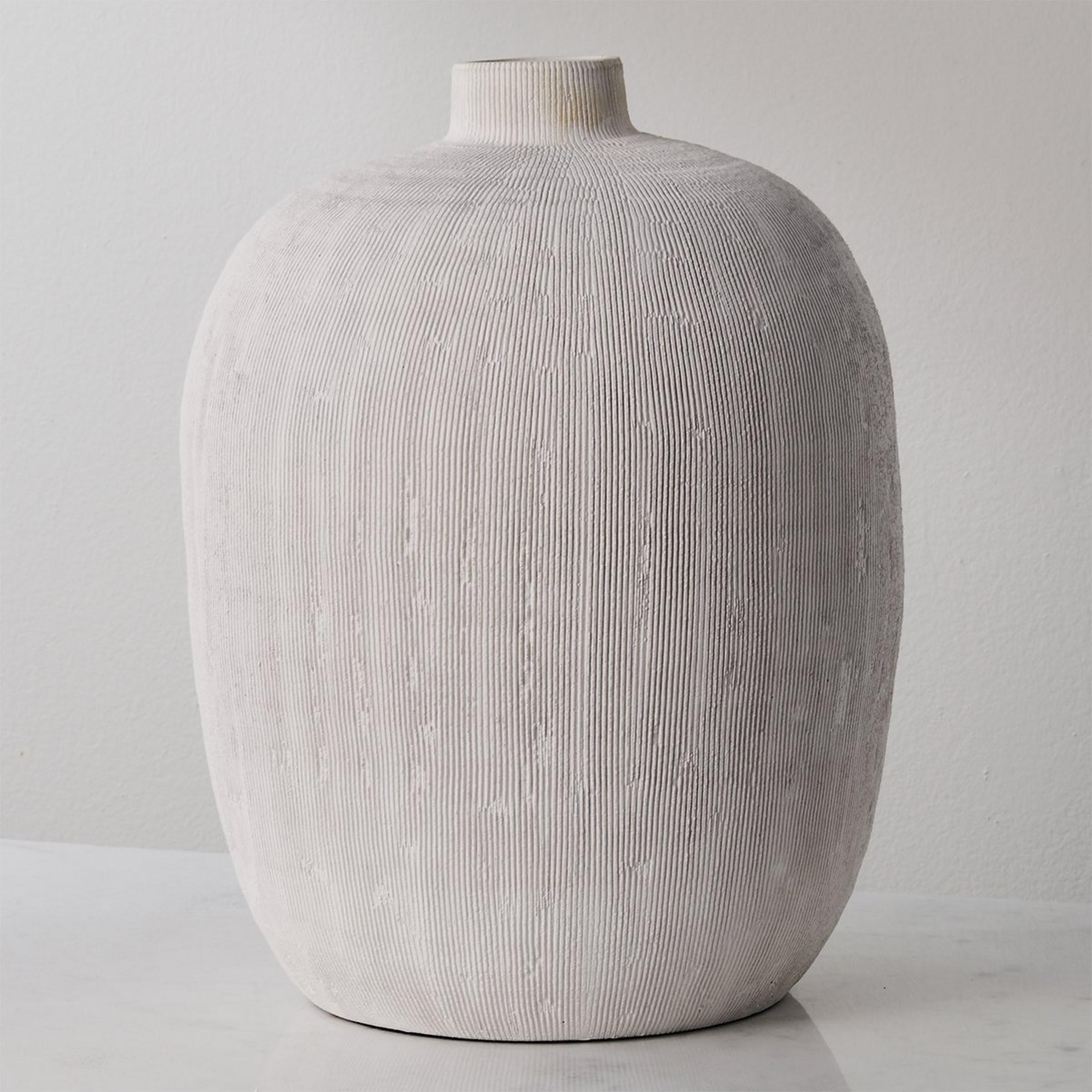 The Boccale Vase is a work of art with a unique etched surface. Its smooth interior and textured exterior make it a perfect vessel for your favorite blooms, or as a decorative sculptural piece that adds natural beauty to any room.